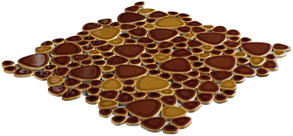 レトロな雰囲気と現代的なデザインを融合させて上品で可愛らしい玉石モザイクタイル。滑らかな丸みが、空間に温かみを添えてます。