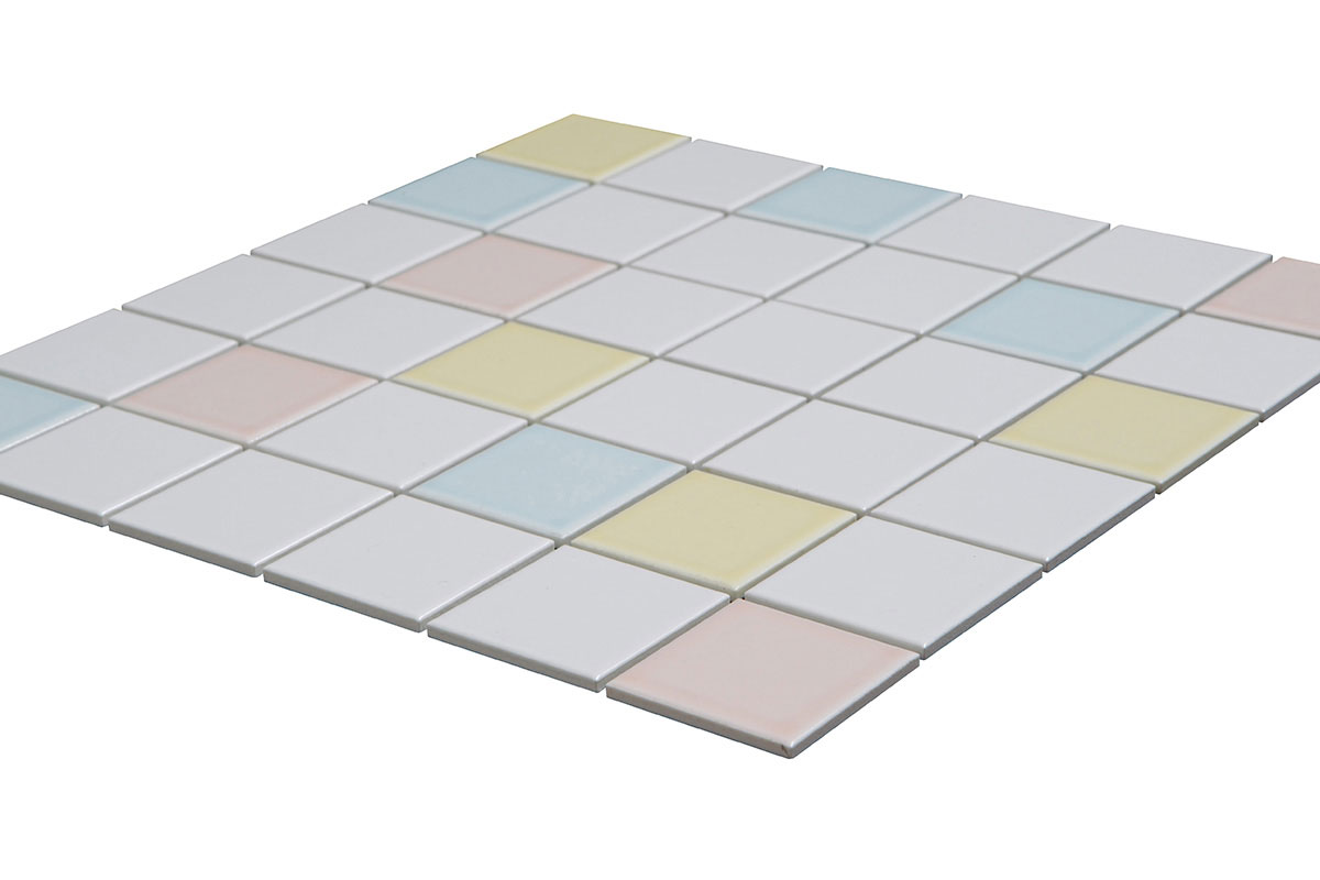 鮮やかな発色が魅力のモザイクタイル。スーパーホワイトの生地を使用しているため、明るくクリアな色合いをお楽しみ頂けます。
