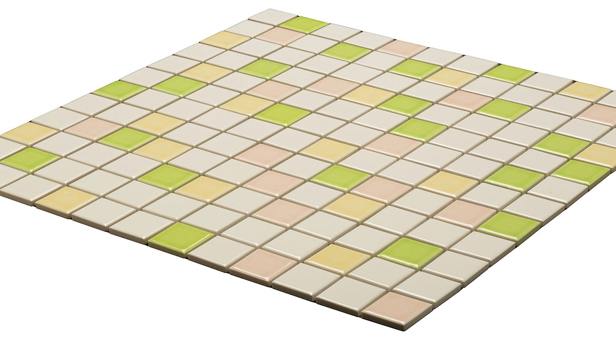 鮮やかな発色が魅力のモザイクタイル。スーパーホワイトの生地を使用しているため、明るくクリアな色合いをお楽しみ頂けます。