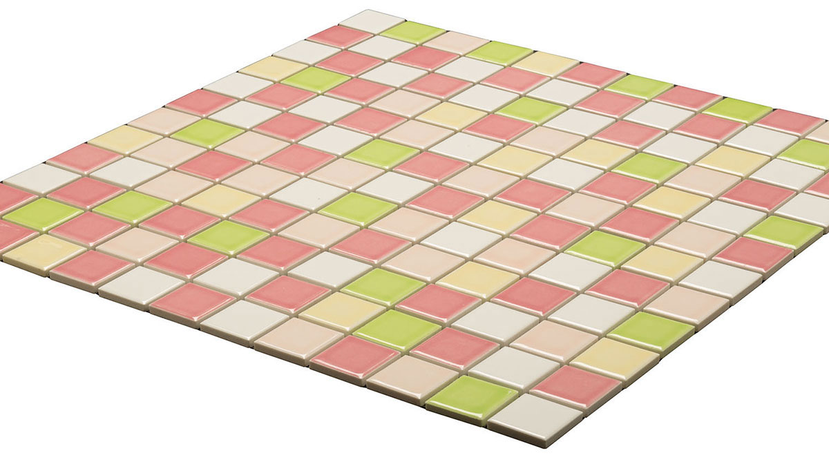 鮮やかな発色が魅力のモザイクタイル。スーパーホワイトの生地を使用しているため、明るくクリアな色合いをお楽しみ頂けます。
