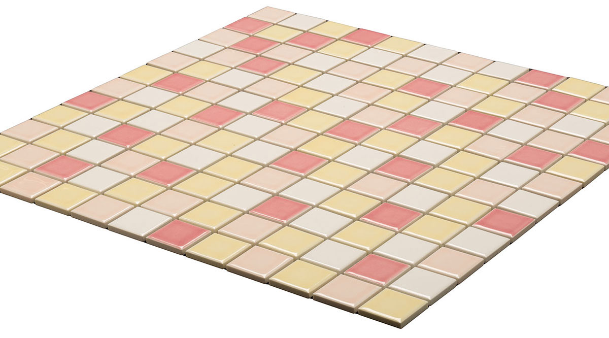 鮮やかな発色が魅力のモザイクタイル。スーパーホワイトの生地を使用しているため、明るくクリアな色合いをお楽しみ頂けます。