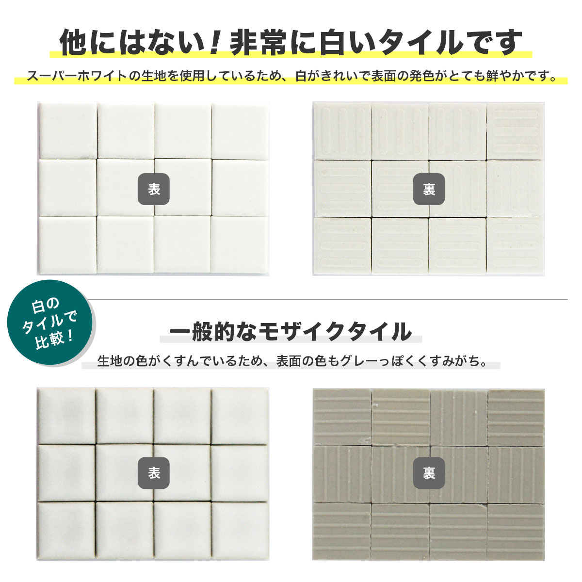 鮮やかな発色が魅力のモザイクタイル。スーパーホワイトの生地を使用しているため、明るくクリアな色合いをお楽しみ頂けます。