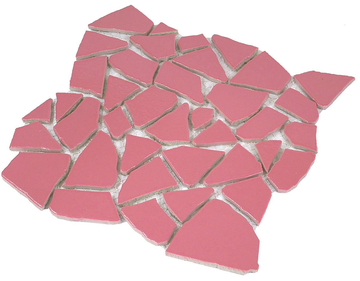 曲面・曲線に張ることができるタイルです。生産工程で人間が割っていますので同じ形状はありません。鋭角部分の縁も丸く加工しているので安全です。