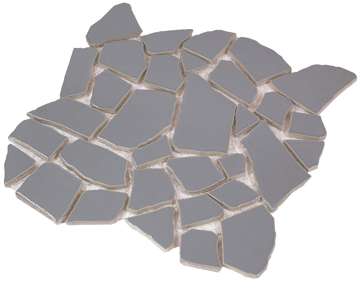 曲面・曲線に張ることができるタイルです。生産工程で人間が割っていますので同じ形状はありません。鋭角部分の縁も丸く加工しているので安全です。