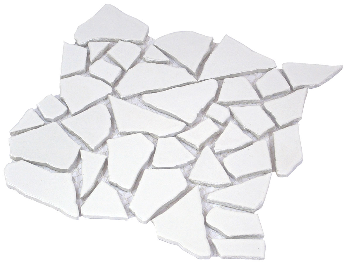 曲面・曲線に張ることができるタイルです。生産工程で人間が割っていますので同じ形状はありません。鋭角部分の縁も丸く加工しているので安全です。