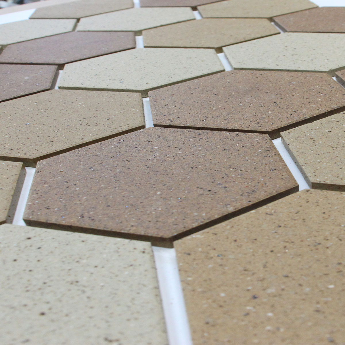 重量感のある六角形のフォルムが魅力の煉瓦床タイル。クラシックな風合いとモダンなデザインが融合し、空間に独特の存在感を与えます。耐久性に優れ、経年変化と共に味わい深くなり、ワンランク上のステージと導きます。