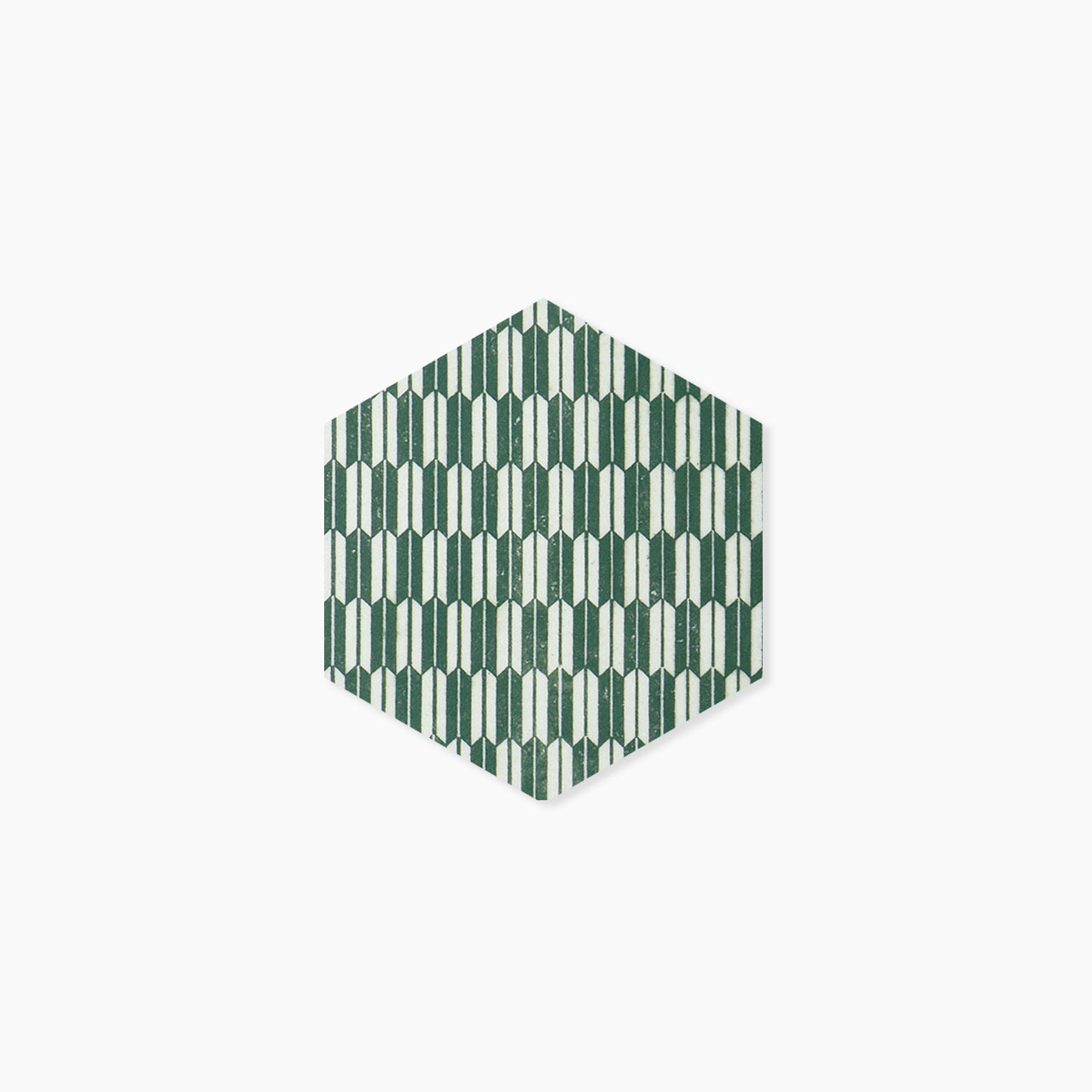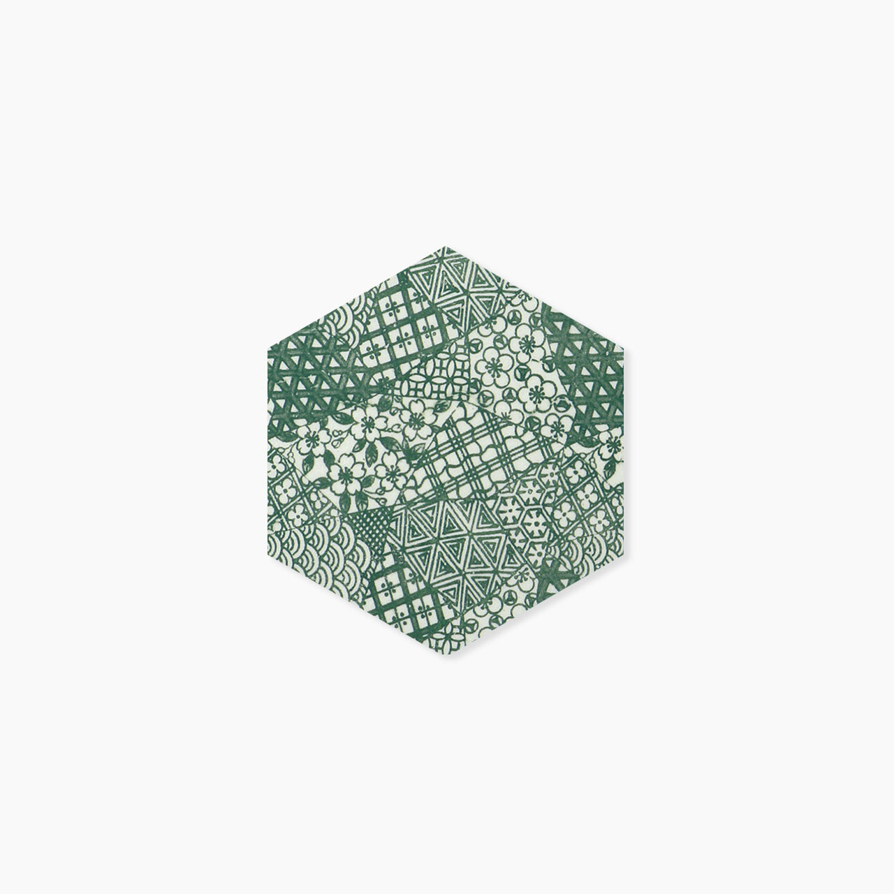 古来からある伝統的な和柄をあしらったタイルです。空間にノスタルジックな彩りを添えます。また高温1度焼成品のため、軽歩行の床にもご使用いただけます。