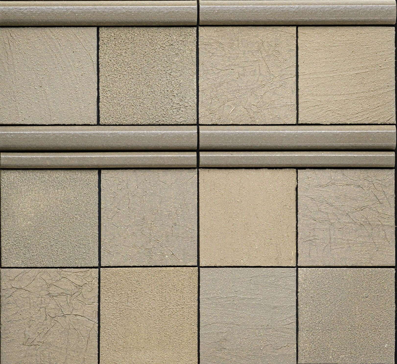 現在主流の低コスト、大量生産に適した乾式プレス製法に対し、当社は水分を含んだ粘土状の素地を押出成形機で板状に成形する湿式製法を採用しています。