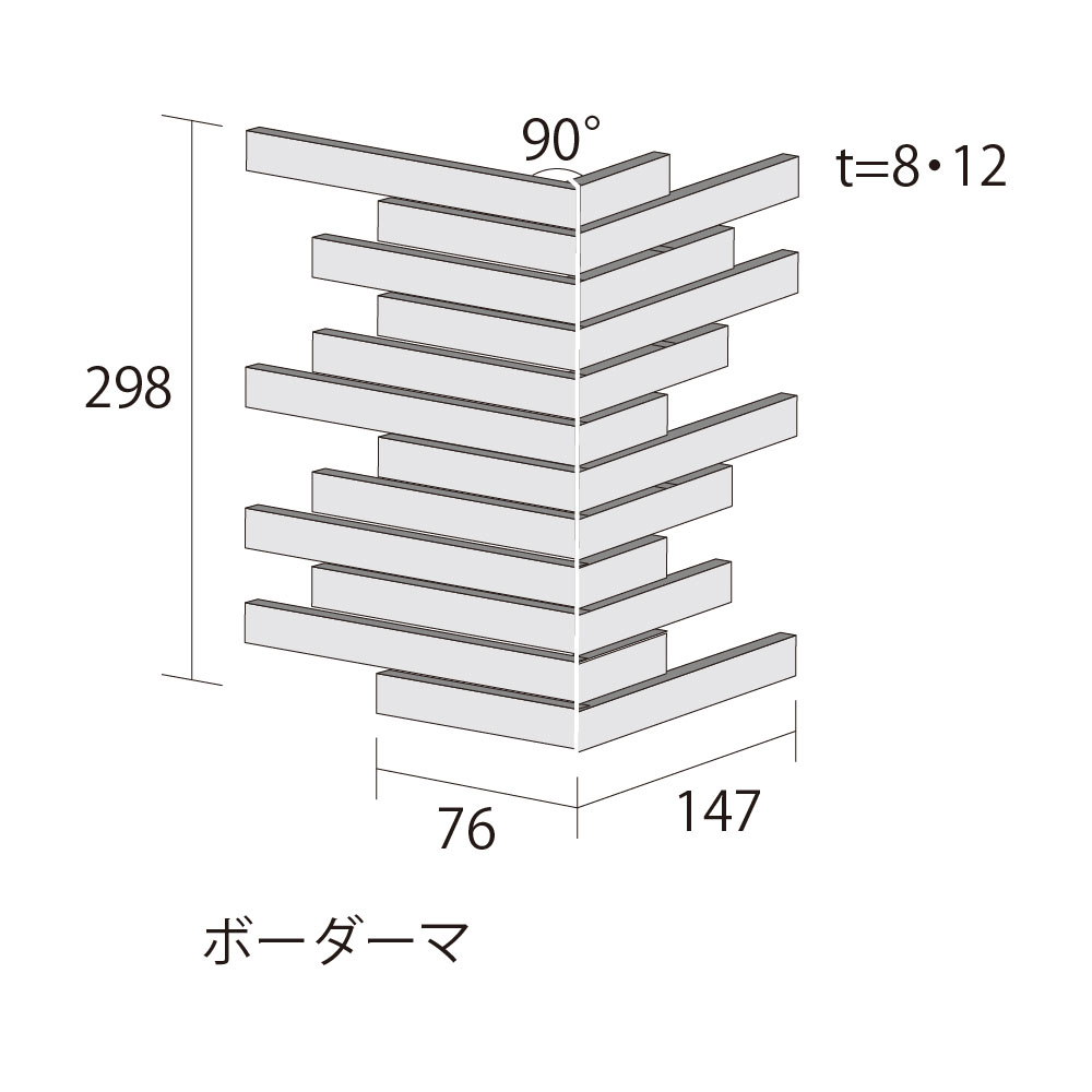 ● ボーダーネは、1シートあたり厚8mm品と12mm品が 2:1の組み合わせになった12段ユニットです。組み合わせパターンは2種類あります。