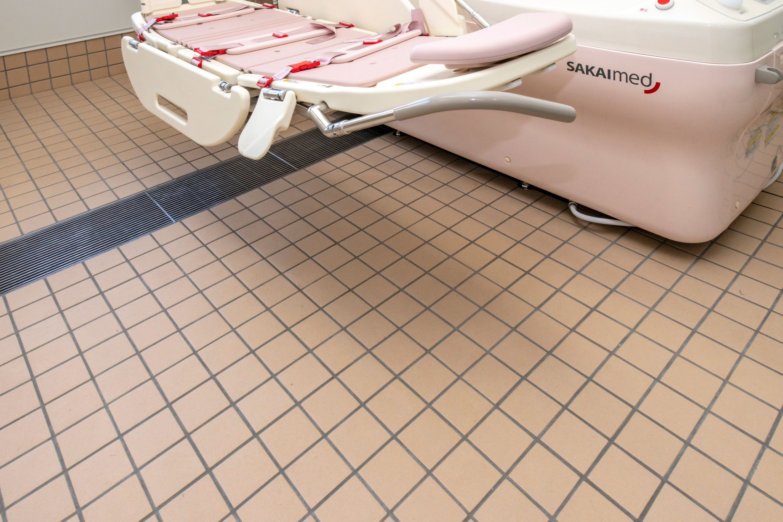 浴室床のヒヤッと感を軽減させる浴室用床タイル。