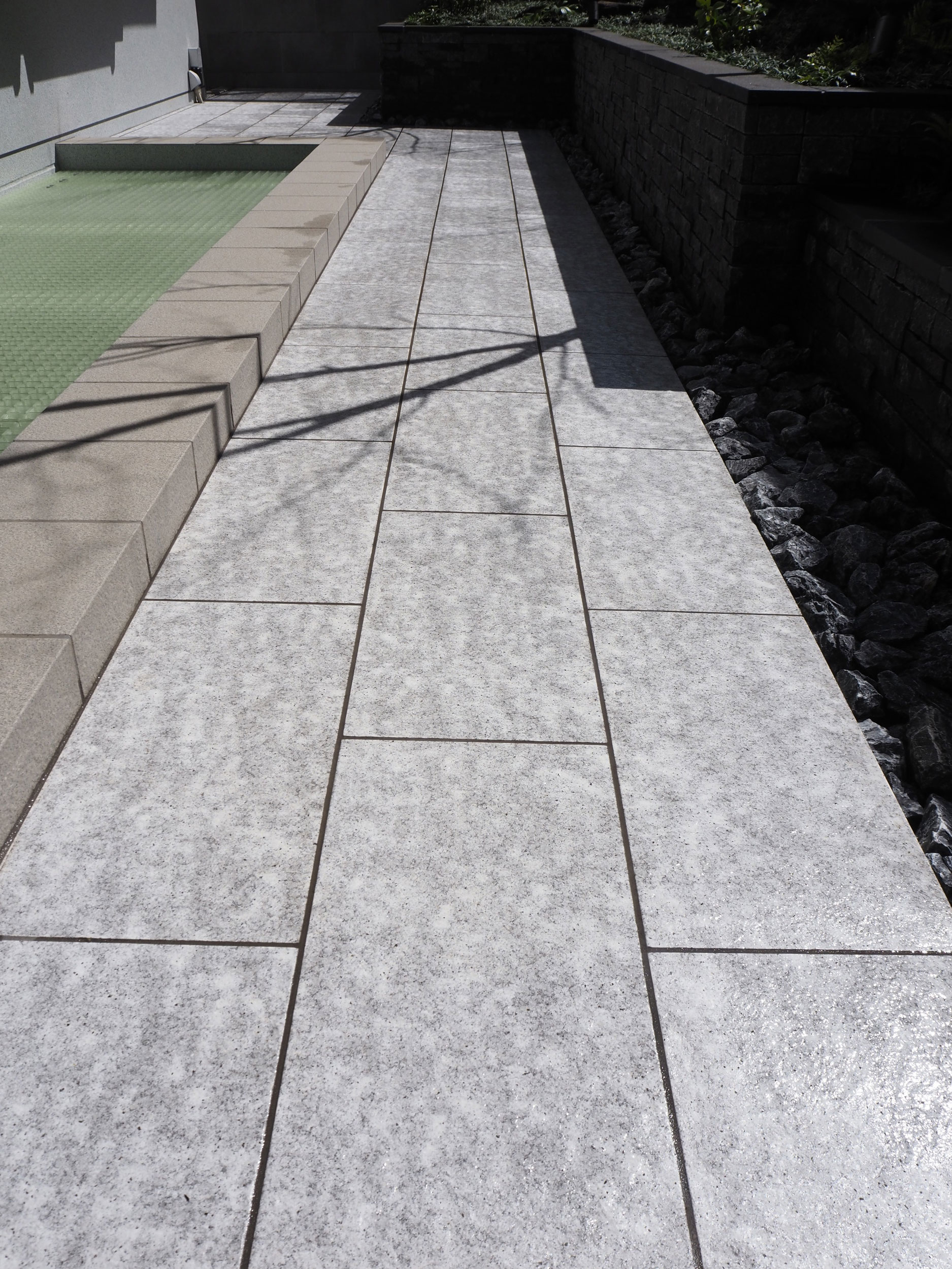 「白い貴婦人」と称されるほどの品のある白さが特徴の稲田石をタイルで再現しました。防汚加工を施した20mm厚のタイルで、パブリックスペースにおすすめです。