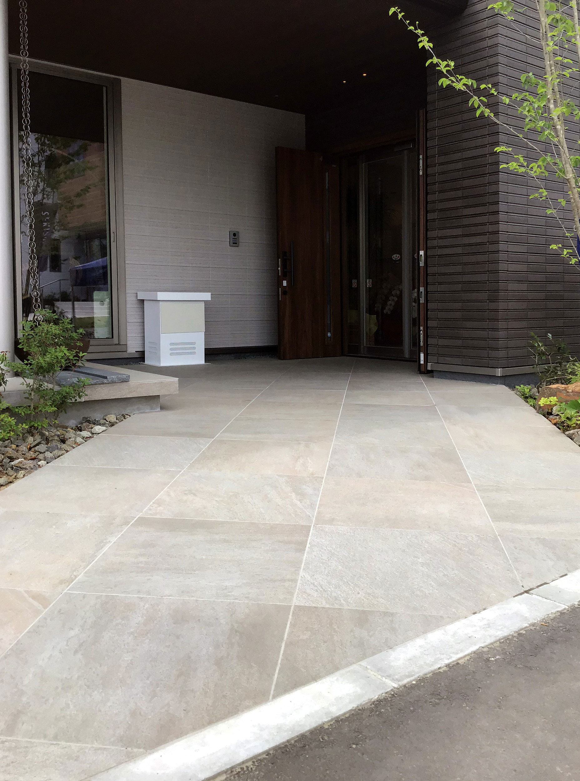 独自のノンスリップ技術により外床・内床を同タイルでコーディネート可能。クォーツサイトのもつ雄渾な美しさが気品ある空間を演出します。