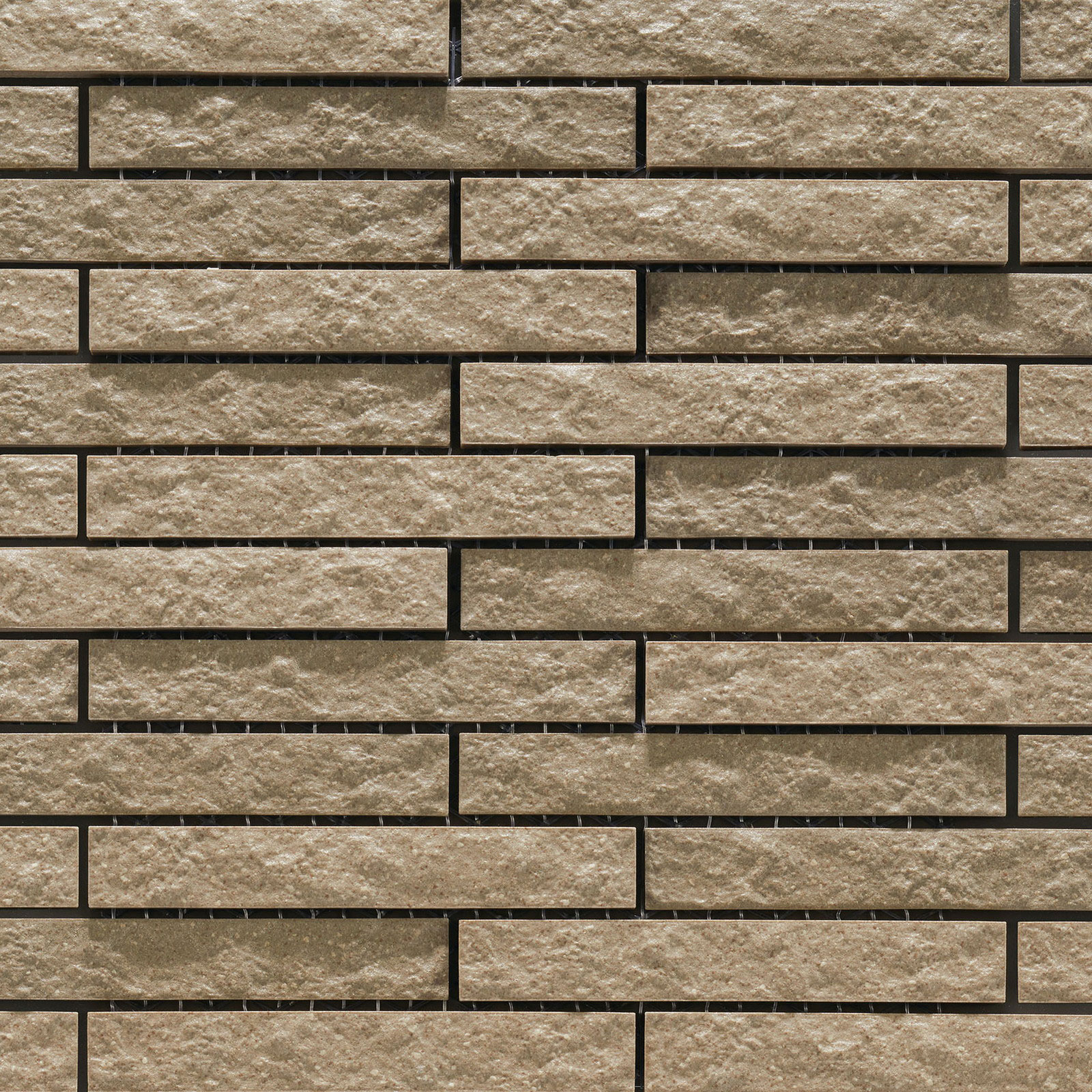 側面も美しく仕上がるフルボディ有色の無釉タイル。割肌面の荒々しさとタイルの厚み差によって生まれる上品な陰影が、ワンランク上の高級感をもたらします。
