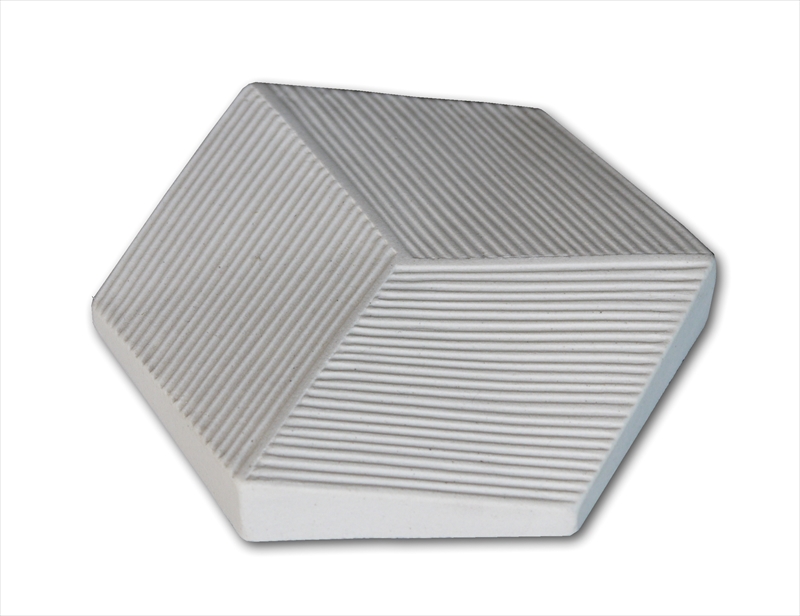 六角形(ヘキサゴンタイル)を遊ぶように、様々なパターンをデザインしたモデル。 凹凸による光の効果が視覚的なユニークさをつくります。 色は銀黒メタリック・アンティークゴールド・白土・白釉。