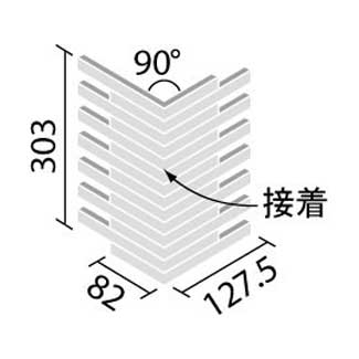 ●ボーダーネット張り[乱割面](馬踏目地)と出隅用平ネット張り[乱割面](馬踏目地)、90°曲ネット張り[乱割面](馬踏目地)(接着)、調整用平[乱割面]は2種類の割面のタイルの混合品(1:1)です。