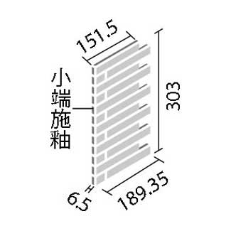 ●25×151角片面小端施釉(短辺)ネット張りは、入隅部分に同一厚さの粒をそろえることで、入隅の凹凸を軽減する役物ですが、意匠がついているため完全にフラットになるわけではありません。