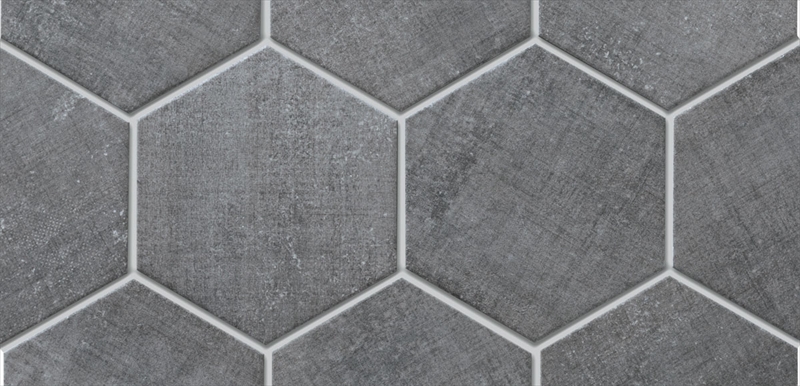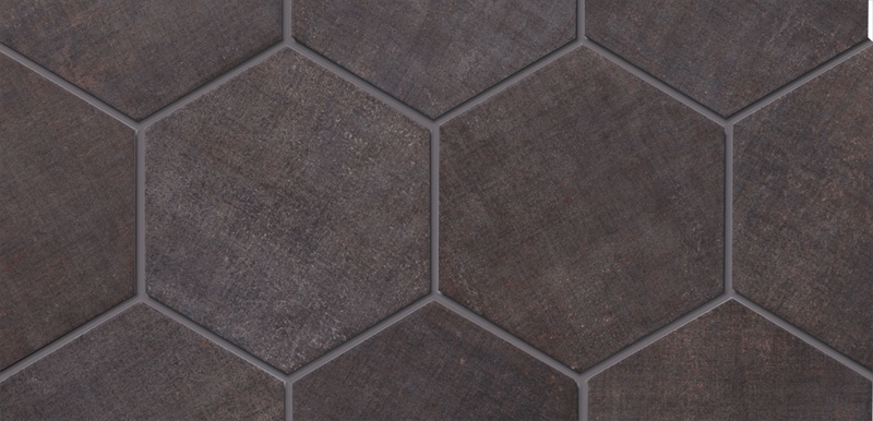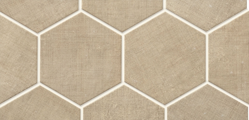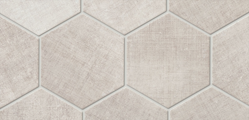 エイジング感のあるテキスタイル柄が特徴のタイルです。 空間のアクセントになるブリック形状と六角形(ヘキサゴンタイル)のシリーズです。
