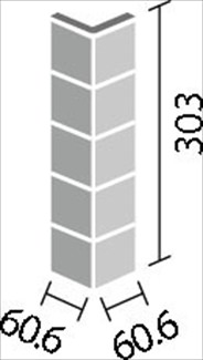 ●60角(納まり役物)は、入隅部分に同一厚さの粒をそろえることで、入隅の凹凸を軽減する役物ですが、意匠がついているため完全にフラットになるわけではありません。
