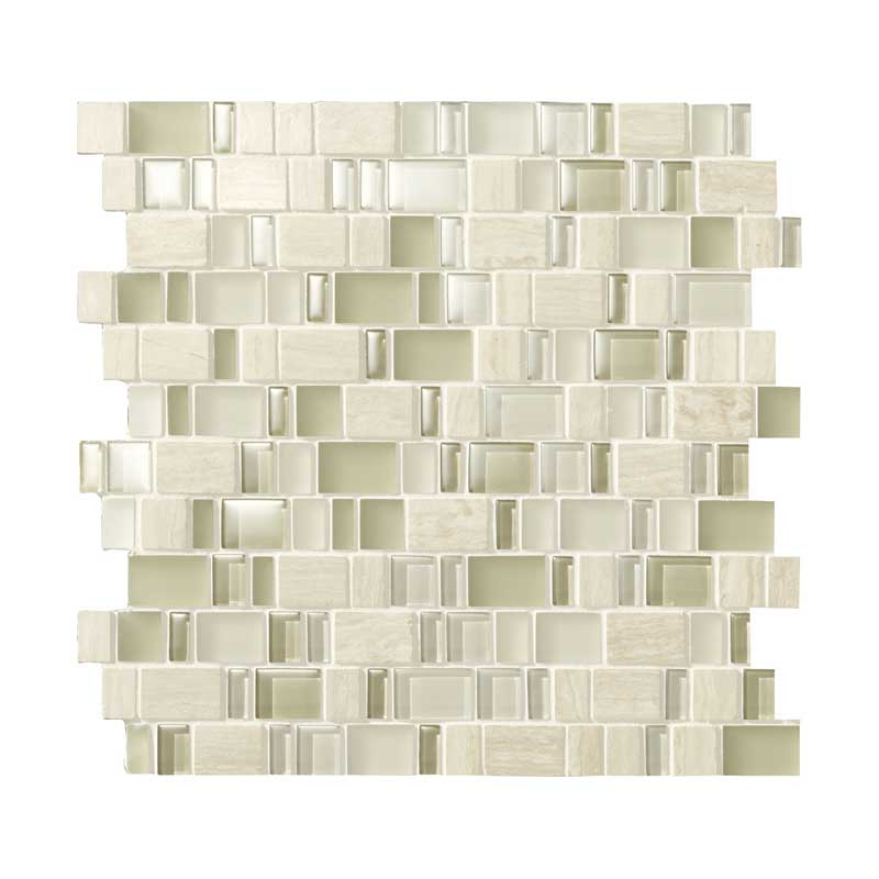 大理石と、さまざまな色と質感のガラスをちりばめたモザイクタイルです。