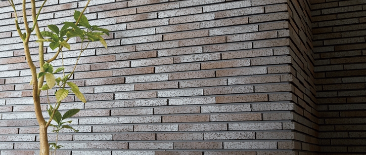 焼きもので彩られた堂々とした空間、土ものの世界を感じさせてくれるタイルです。