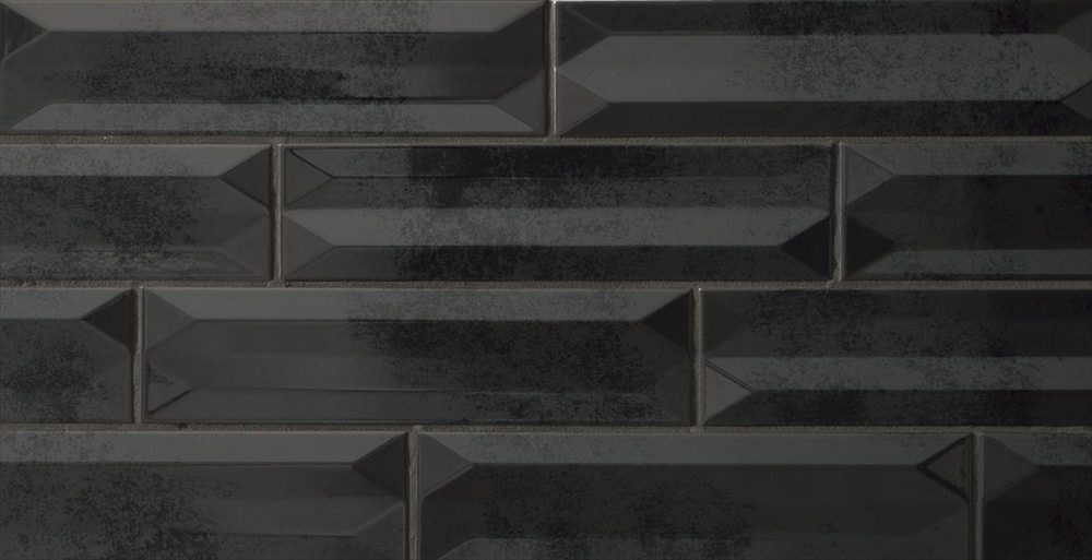 非対称なレリーフが特長のタイルです。レリーフの向きをランダムに張ることにより多方面に光を反射し印象的な壁面を作ります。