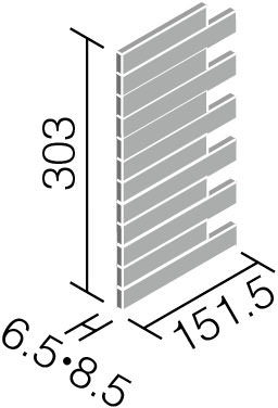 ●25×151角ネット張り(入隅用)は、入隅部分に同一厚さの粒をそろえることで、入隅の凹凸を軽する役物ですが、意匠がついているため完全にフラットにはなりません。
