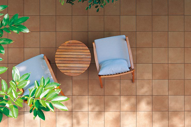 温かみのある質感と多彩な色合いが特徴のコット調外床タイルです。