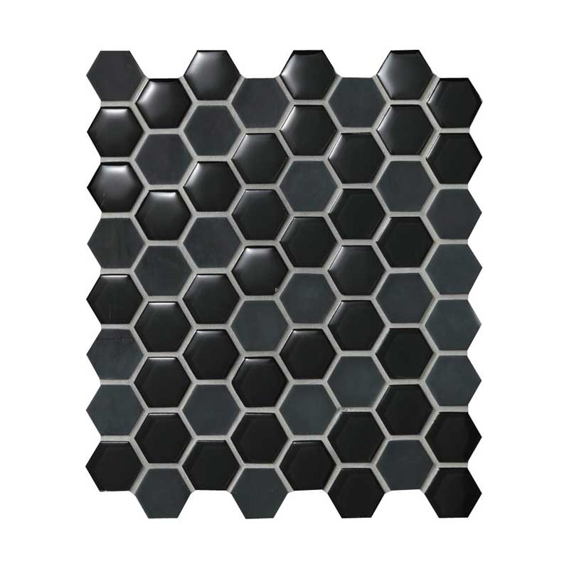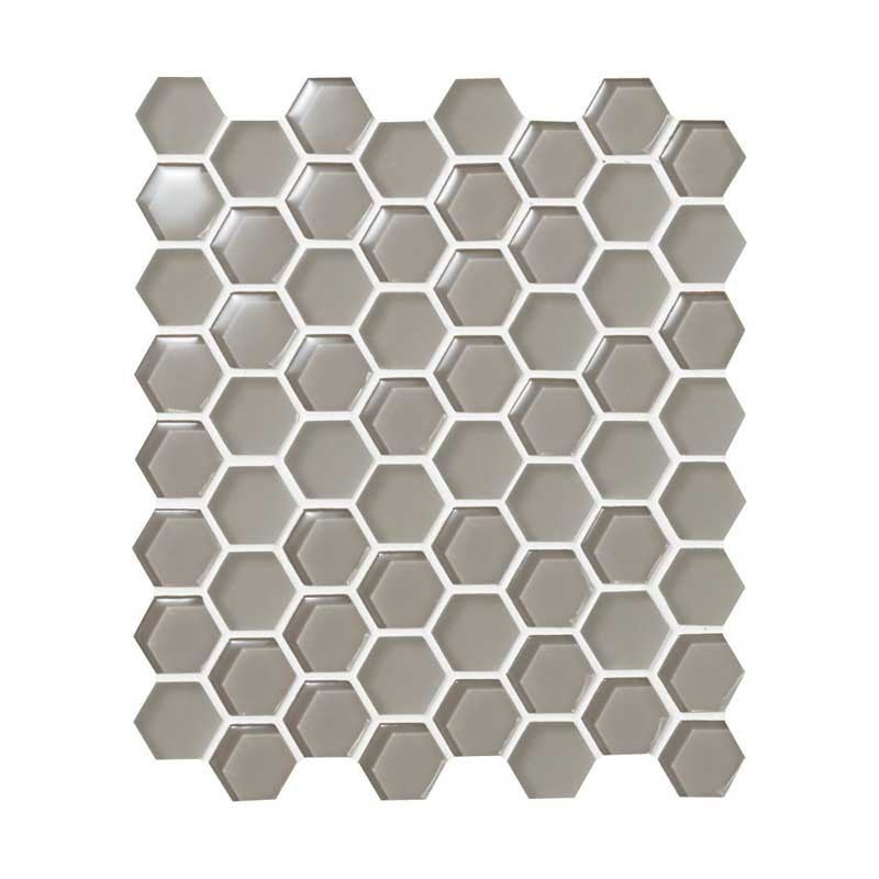 クリアとフロスト2つの表情を持つ六角形(ヘキサゴンタイル)のガラスモザイクです。 異なる反射感の組み合わせにより 空間に動きを演出します。