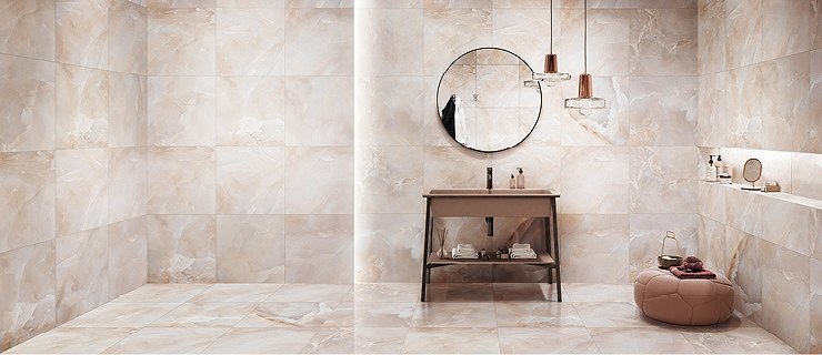 繊細なグラデーション、大胆な脈、個性あるカラーなど様々な希少石の特長を再現した磨きタイルです。モダンからゴージャスな空間づくりにお薦めです。