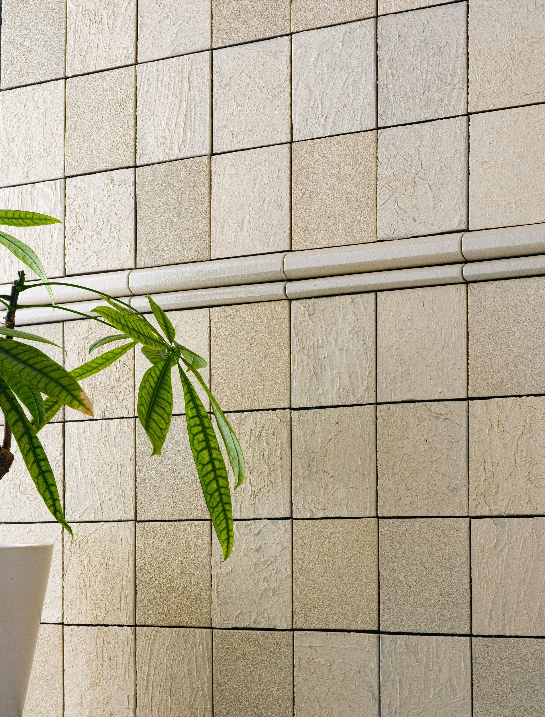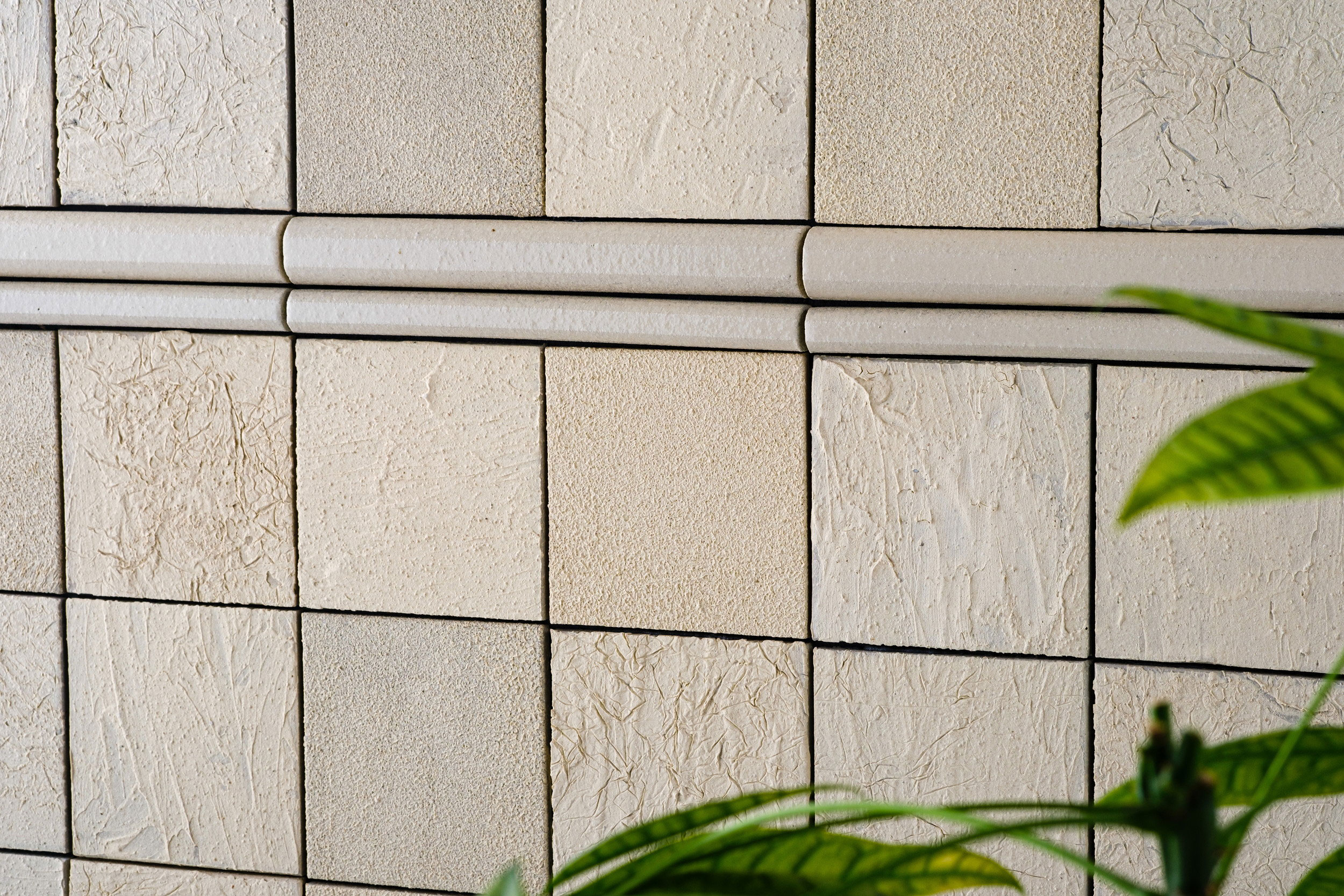左官仕上げの壁をイメージしたタイルです。土の個性を前面に出し、落ち着いた和の空間に仕上げます。