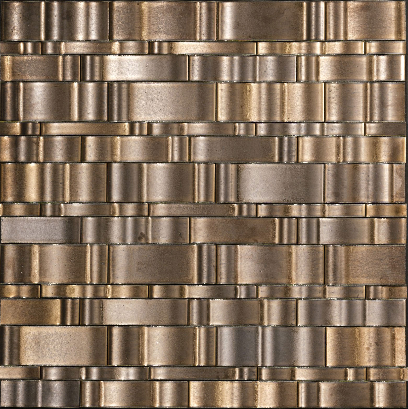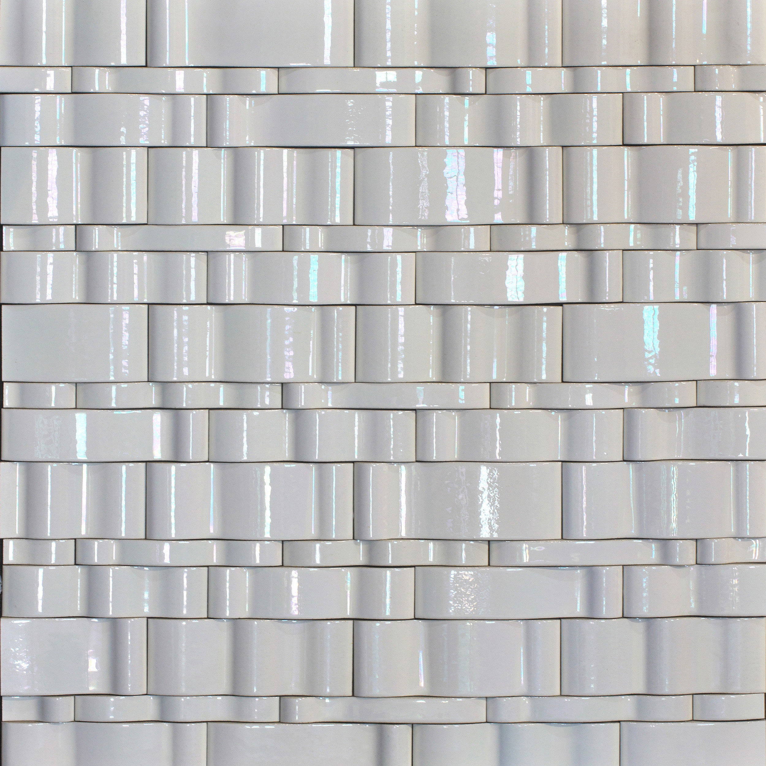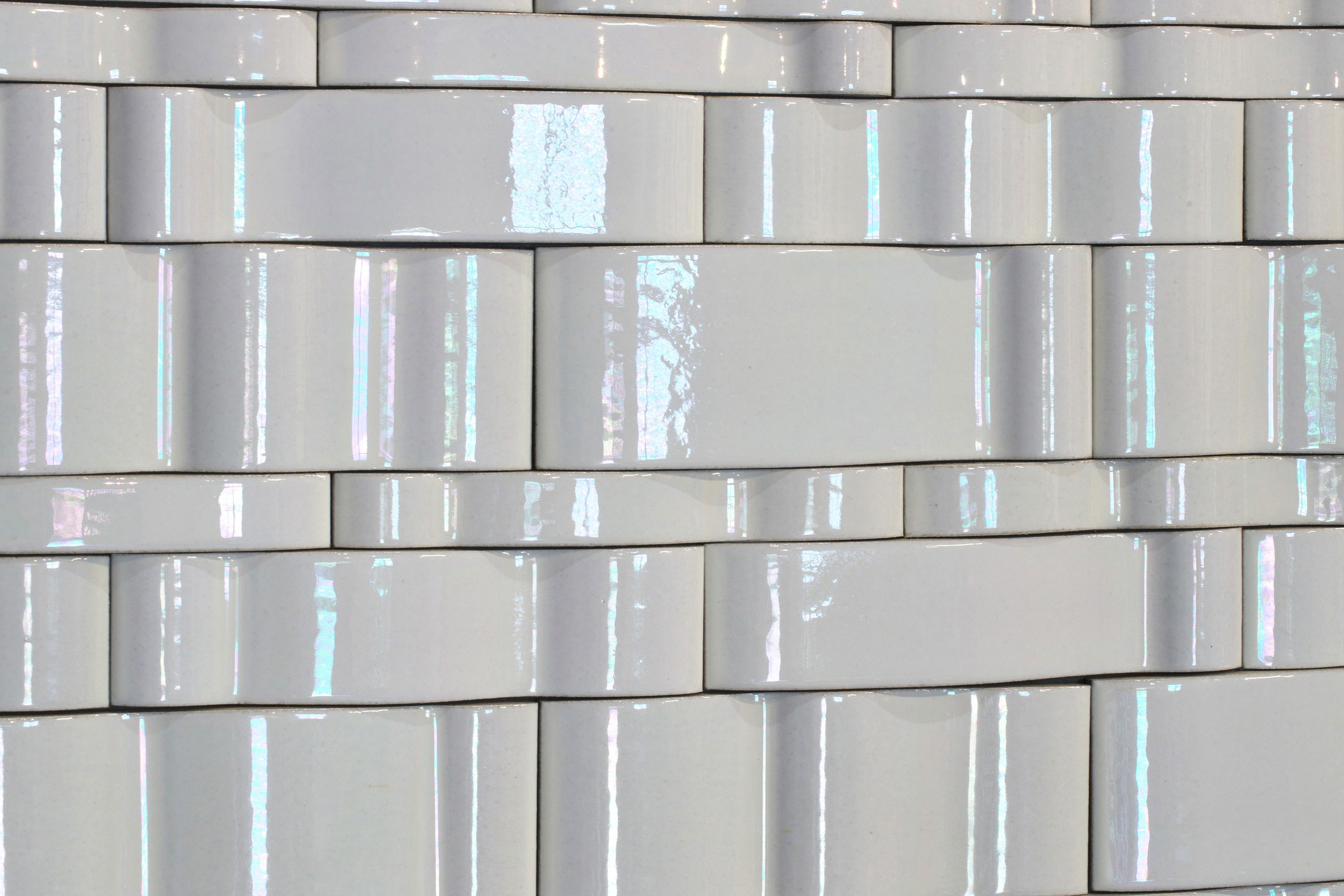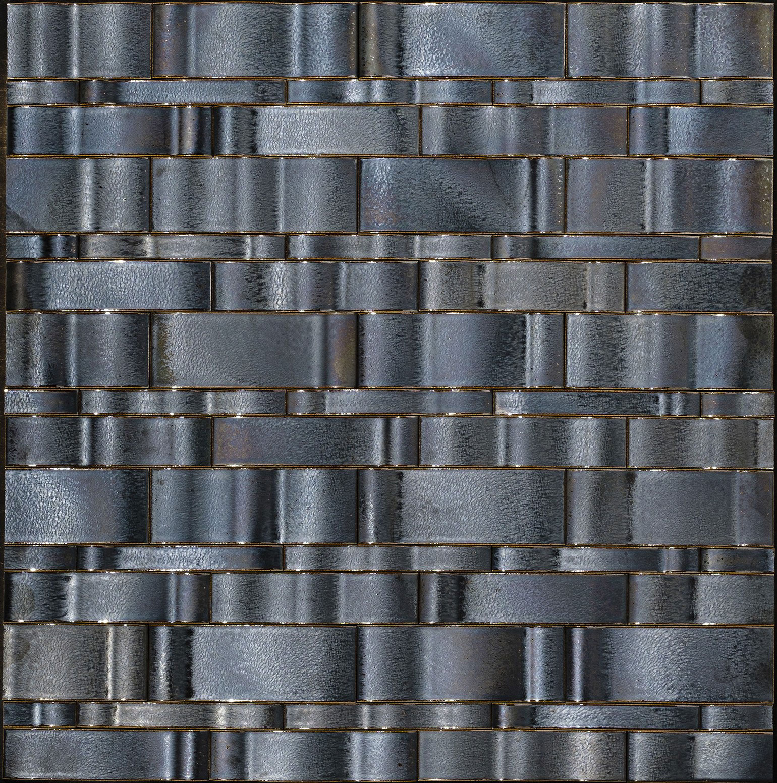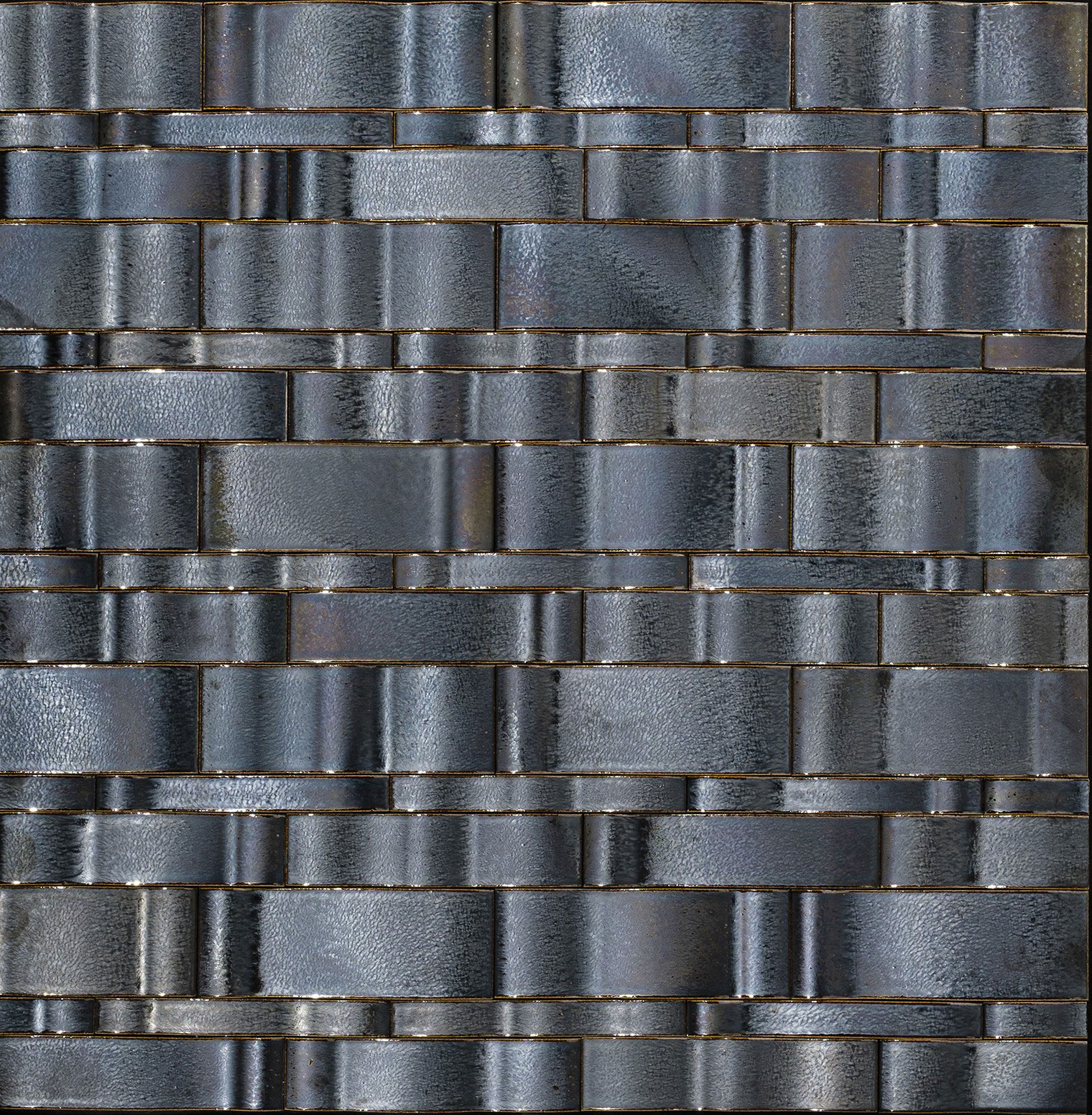 不規則な面状のタイルに金属釉を施しました。ダイナミックな形状と神秘的な色彩で、ラグジュアリーな空間を演出します。