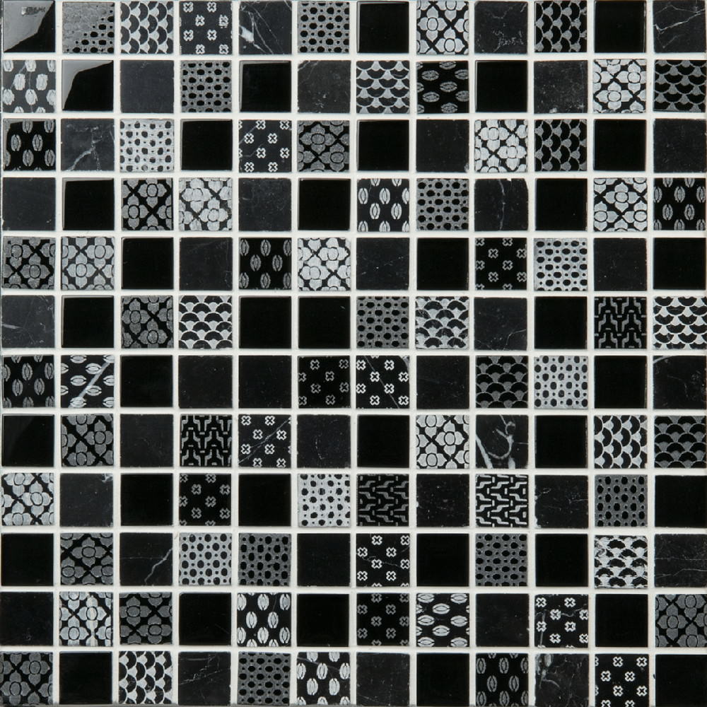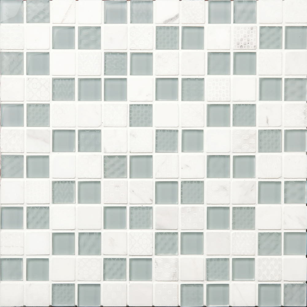 大理石とガラスを合わせ、エッジング加工で奥行き感を表したミックスモザイク。