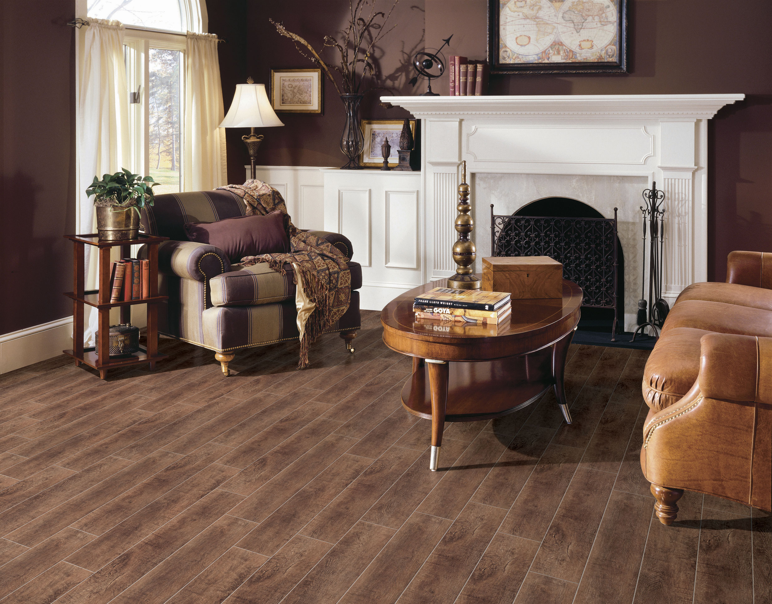 リアルな節目とシックな色合いが美しい木目調タイル。