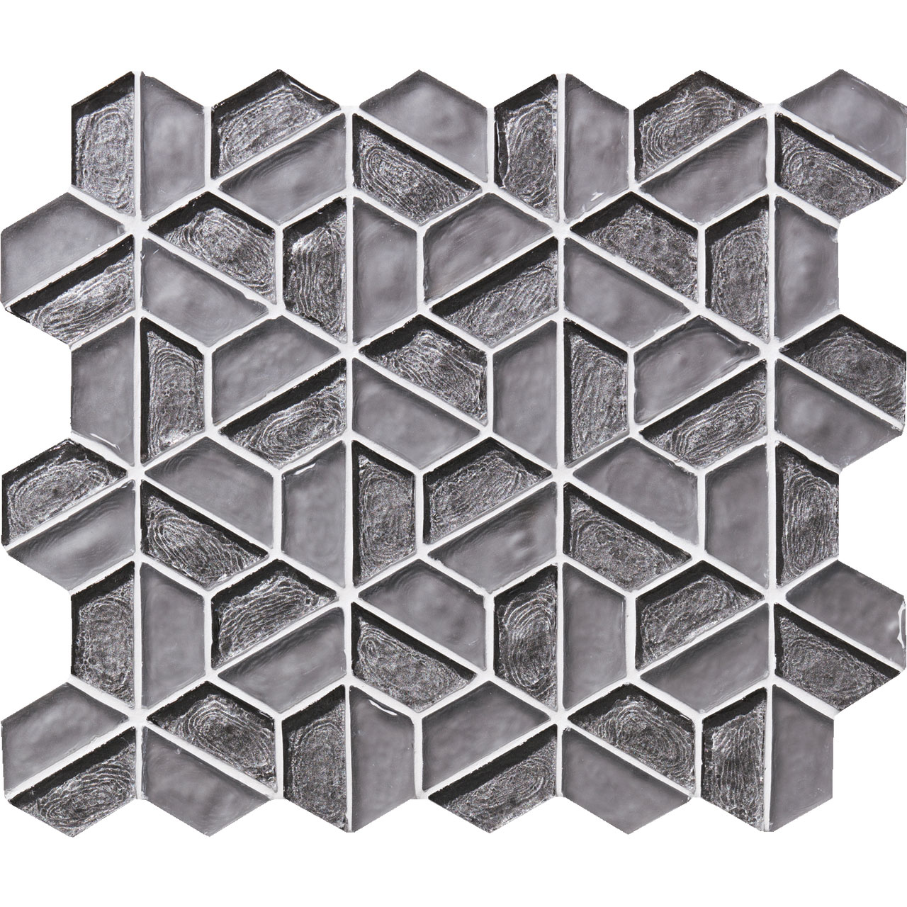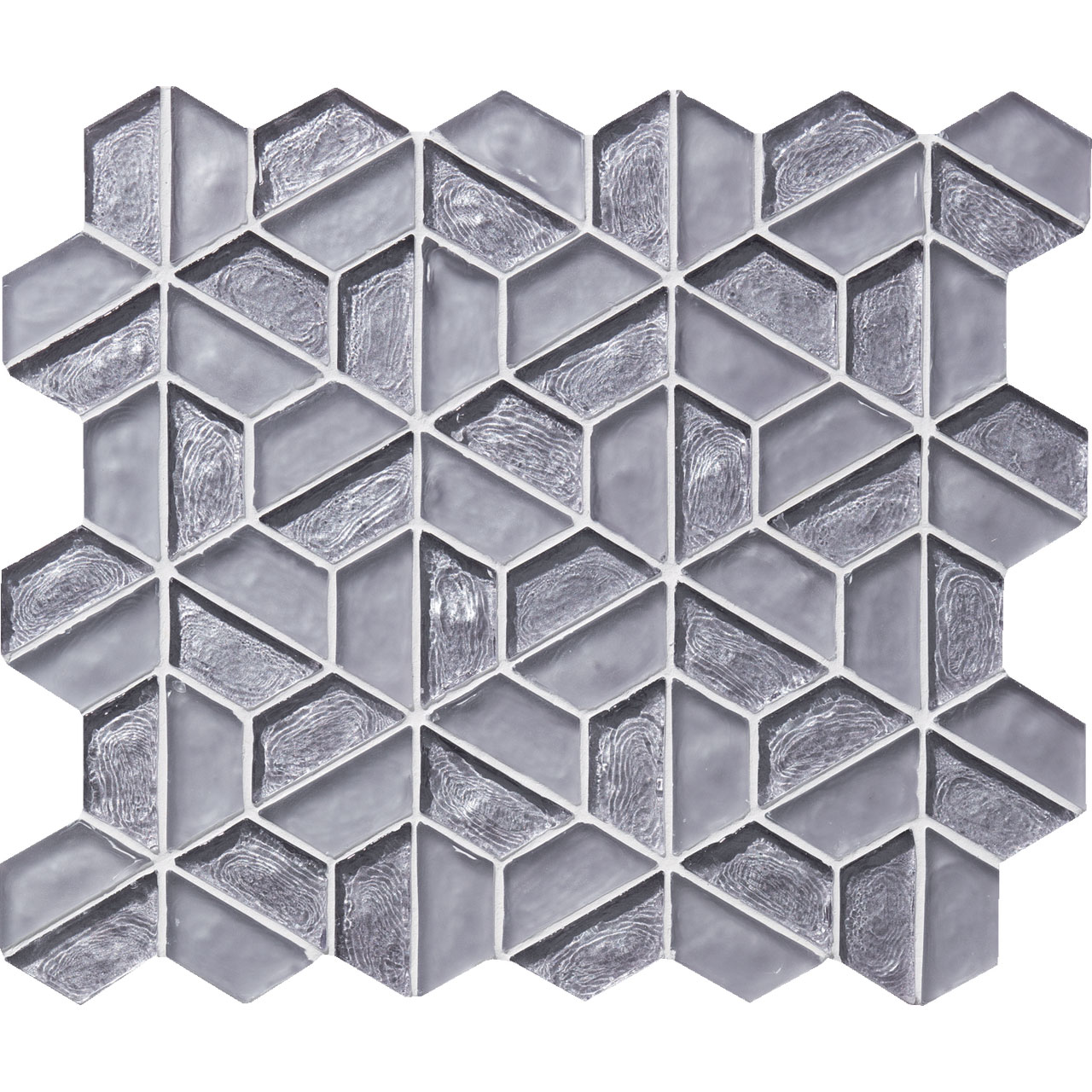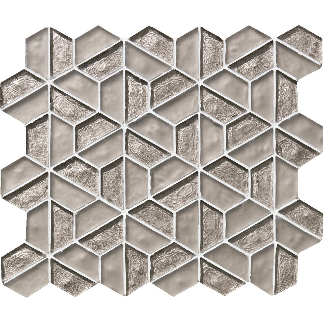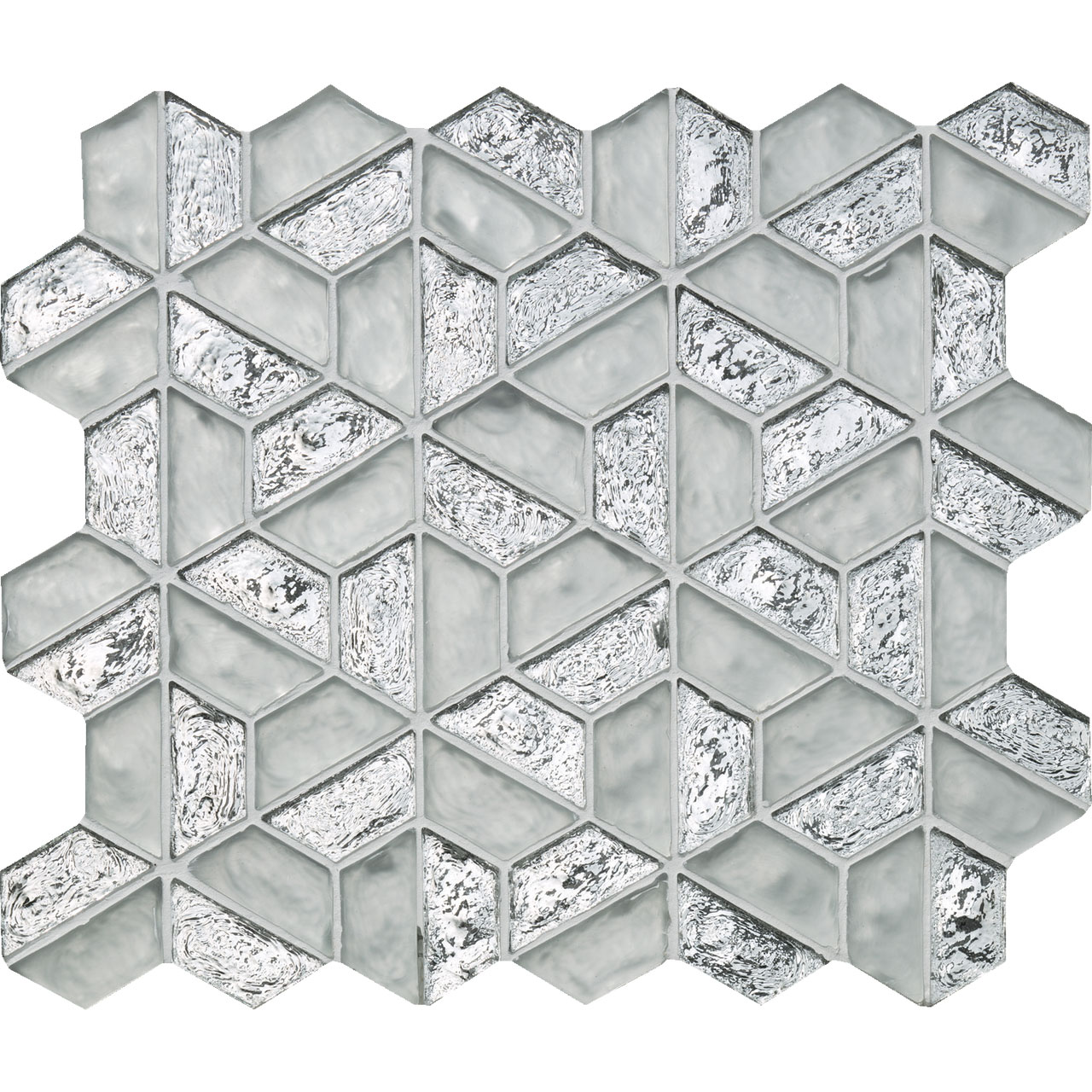 トラペジウム(台形)を幾何学的パターンにしたデザインガラスモザイク。カピス貝のような艶がシンプルな美しさを引き立たせます。