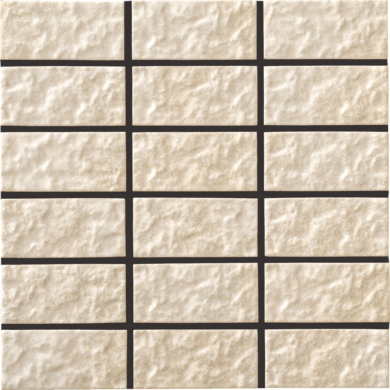 ダイナミックな凹凸のある面状が特徴的なモザイクタイル。他面状との組み合わせでデザイン性が広がります。