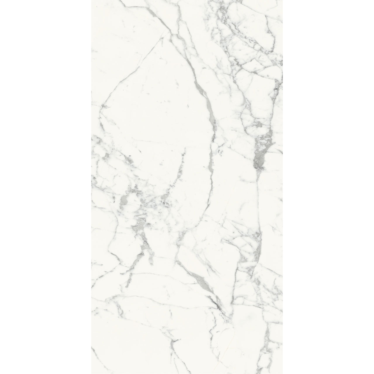 「ビアンコマルモ」の大判薄型タイル。4種のホワイトマーブルの再現で、継ぎ目の少ないすっきりした面を実現します。