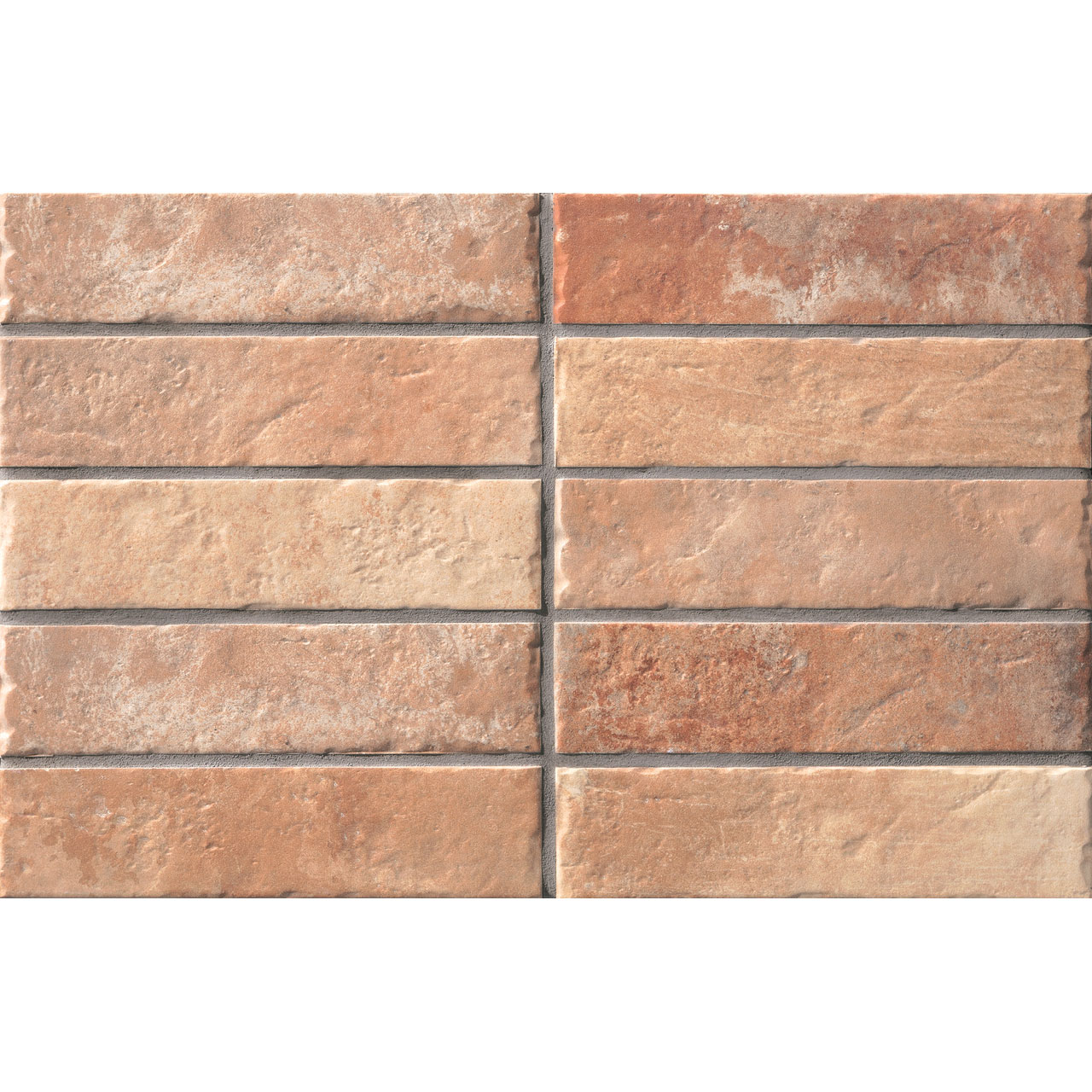 押出成形のブリックタイル。プレス品と比較すると、より自然でラフなエッジを持ちます。