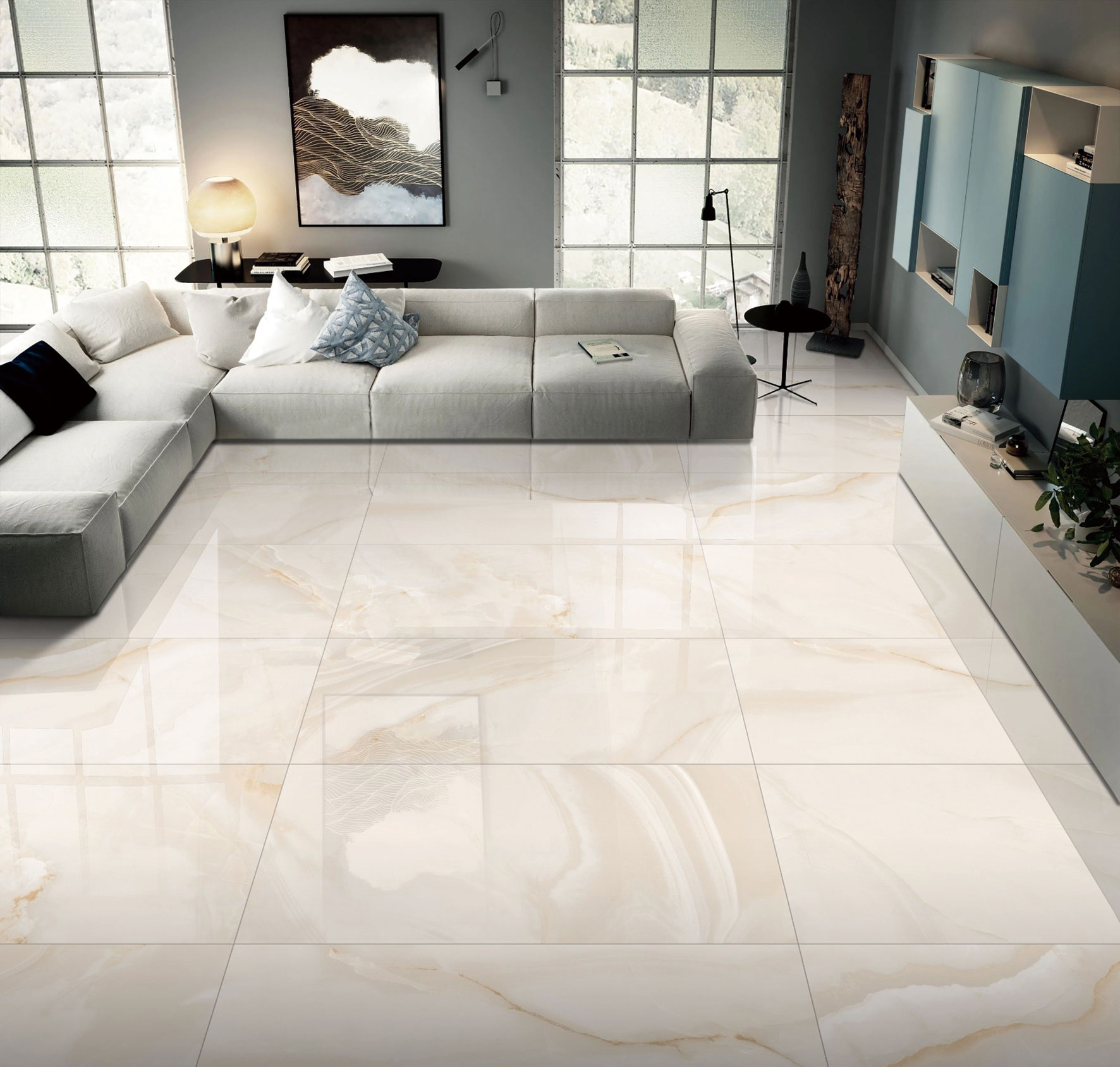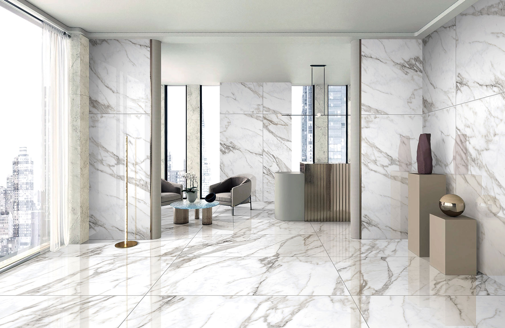 見事な大理石調に美しい磨きが特徴の大判タイル