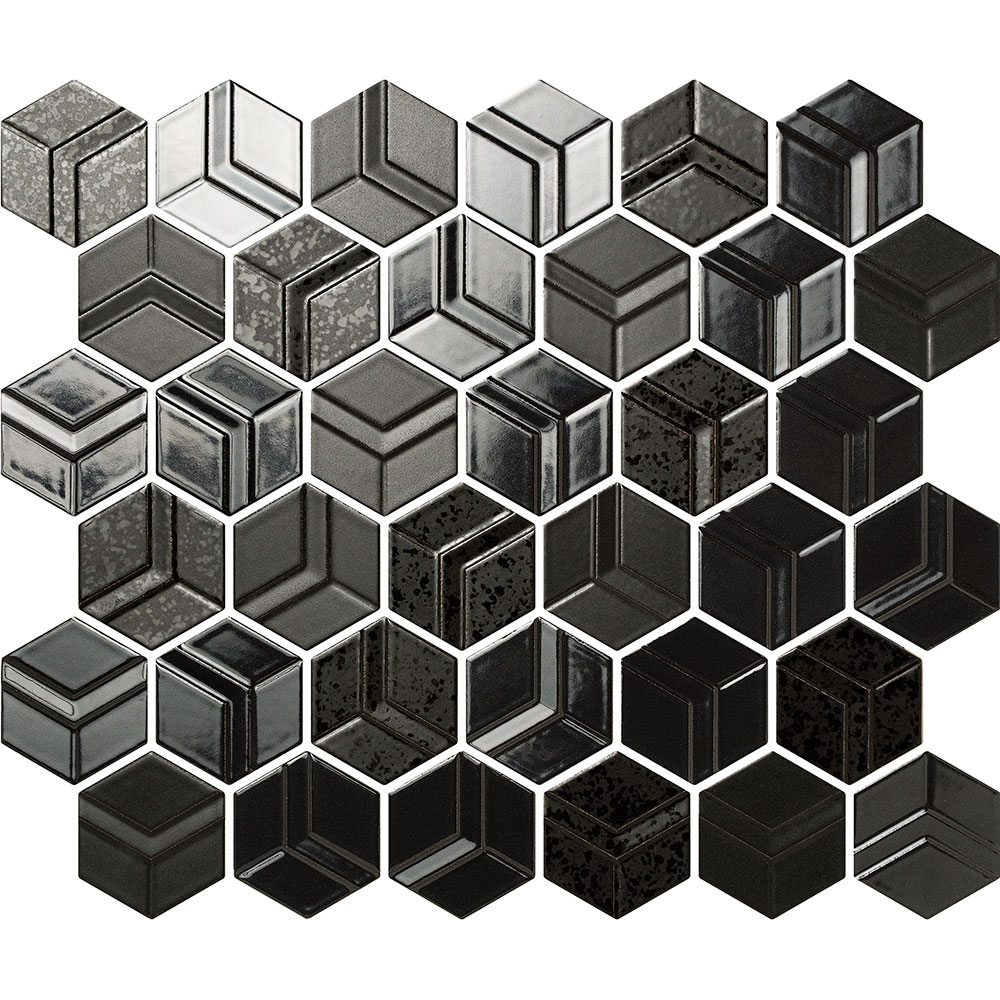 質感の違う3種の釉薬を使用したタイルをミックスさせることにより光の当たり方で様々な表情が見えるラグジュアリーなタイル。