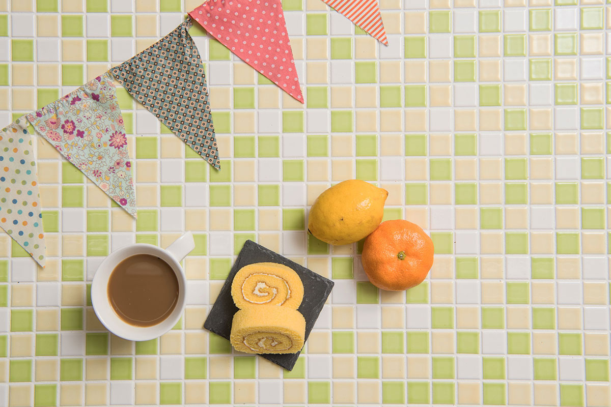 鮮やかな発色が魅力のモザイクタイル。スーパーホワイトの生地を使用しているため、明るくクリアな色合いをお楽しみ頂けます。