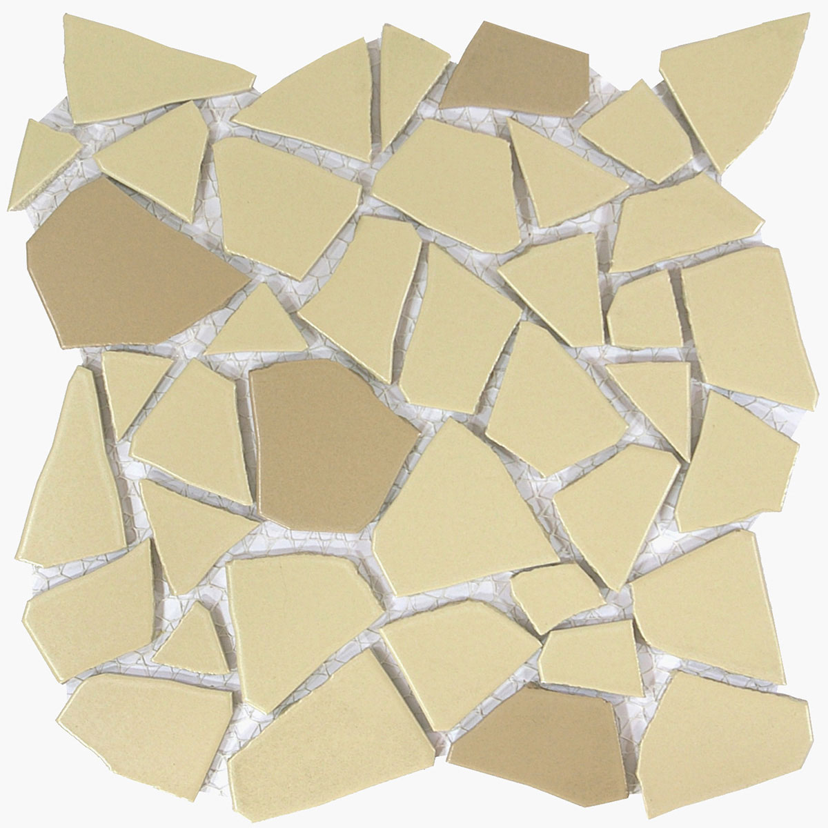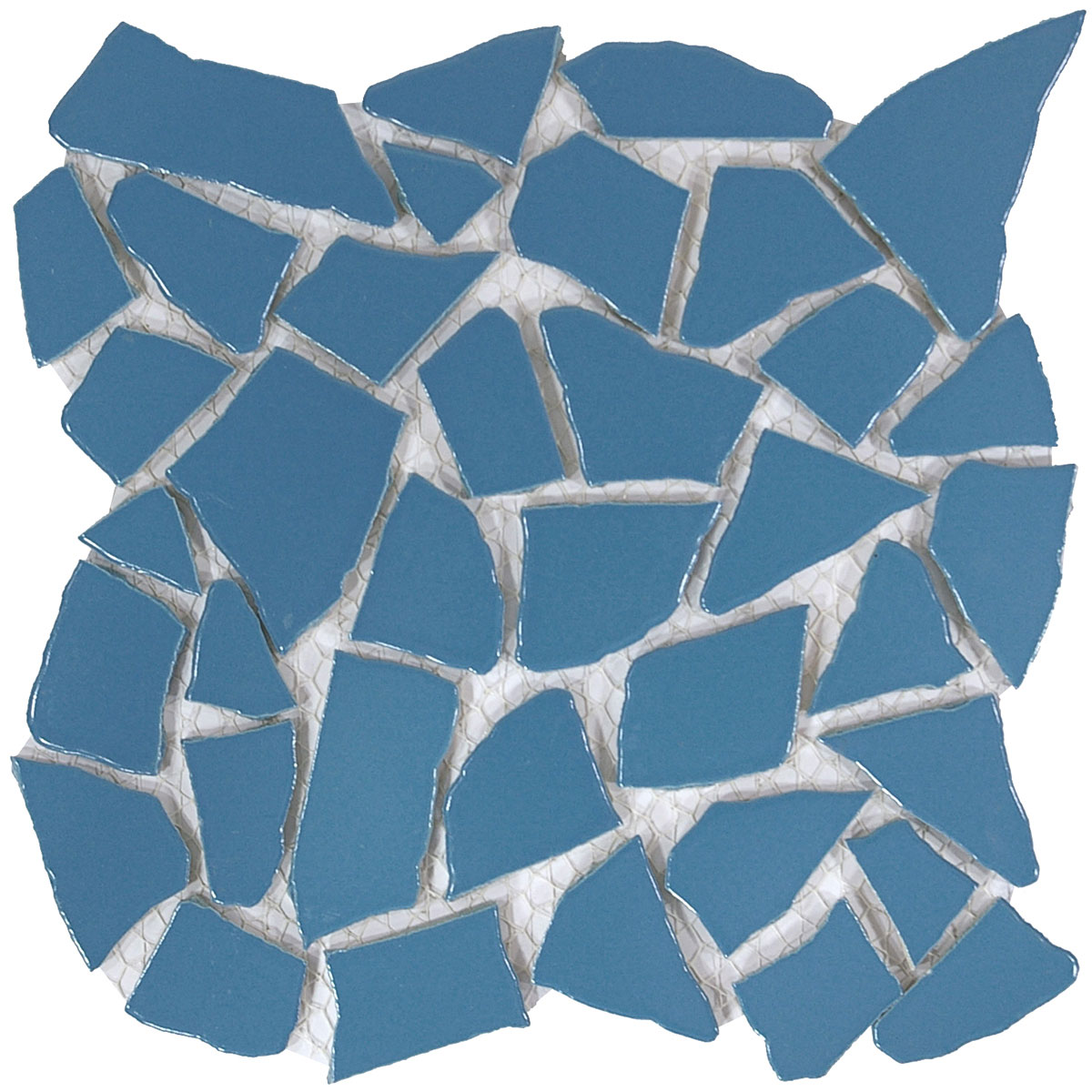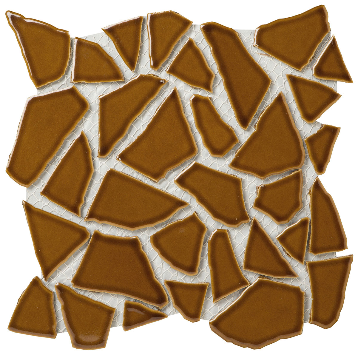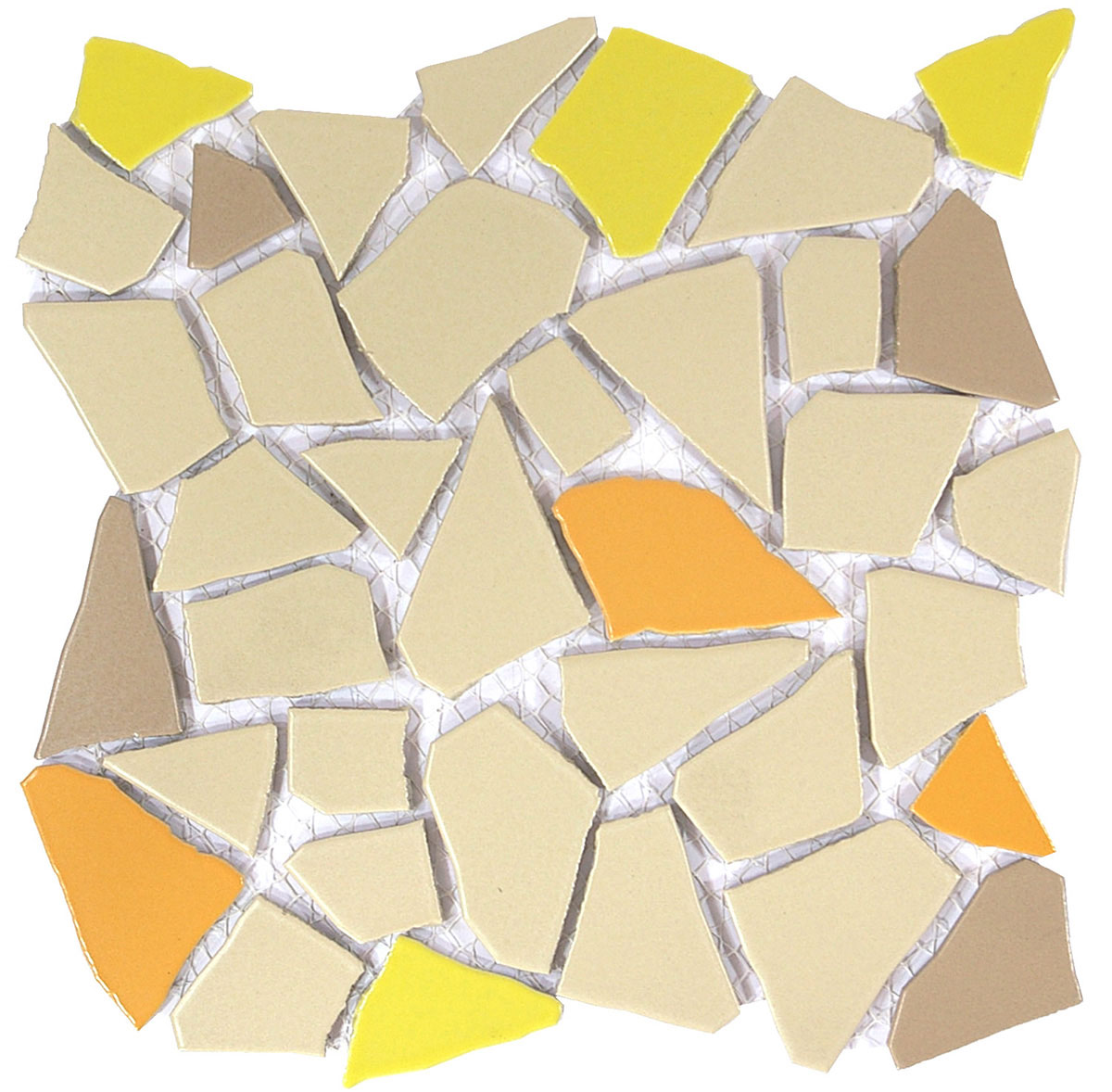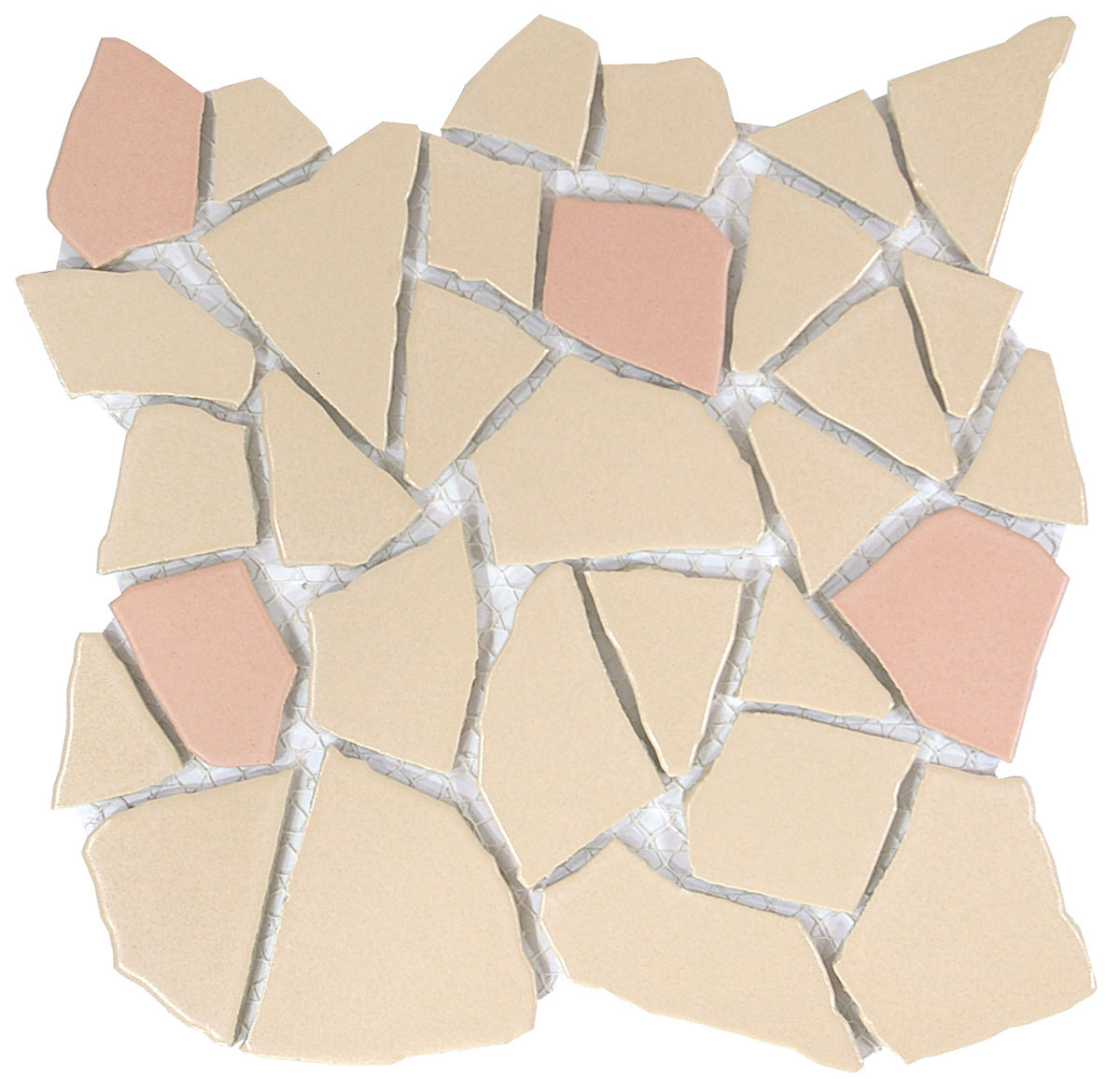 曲面・曲線に張ることができるタイルです。生産工程で人間が割っていますので同じ形状はありません。鋭角部分の縁も丸く加工しているので安全です。