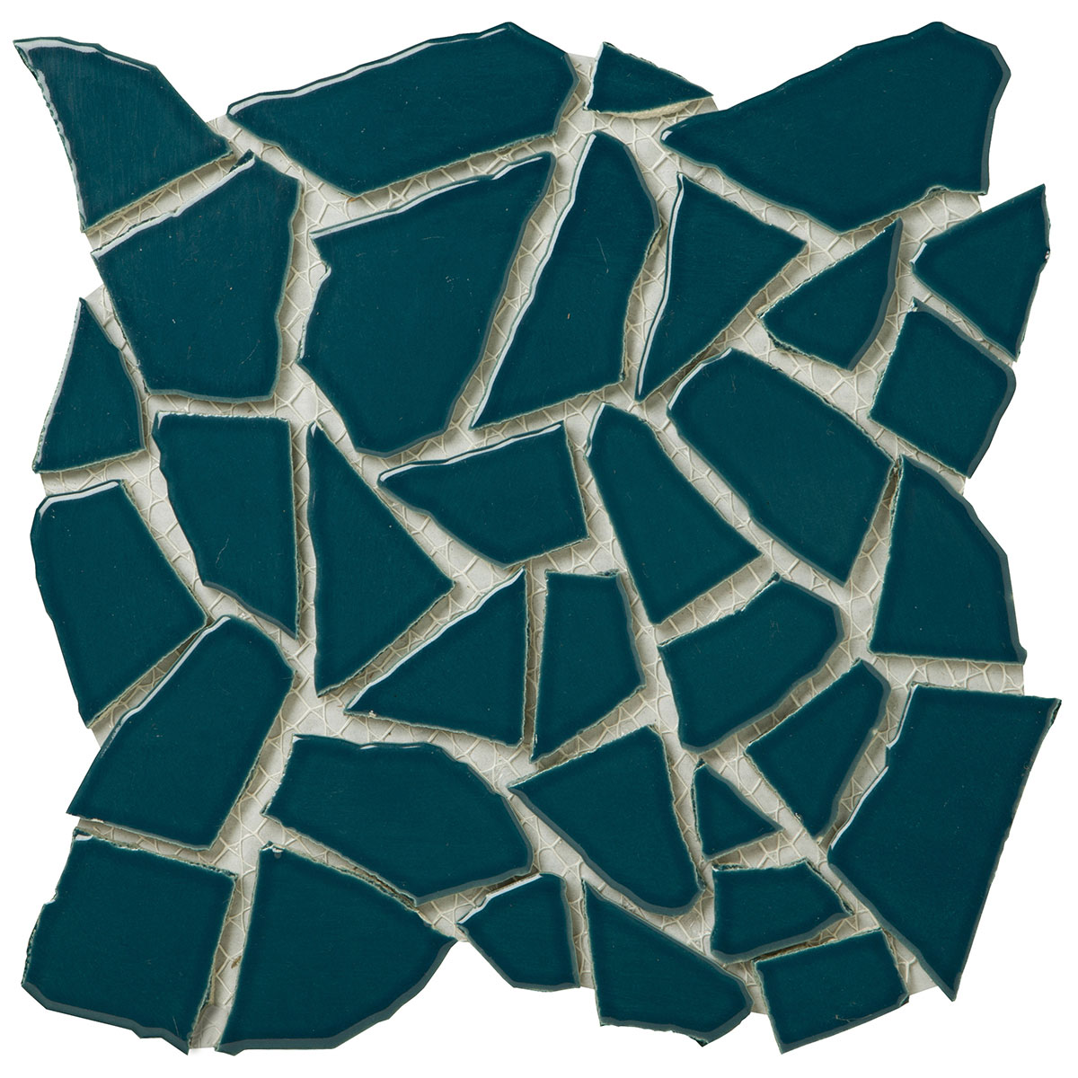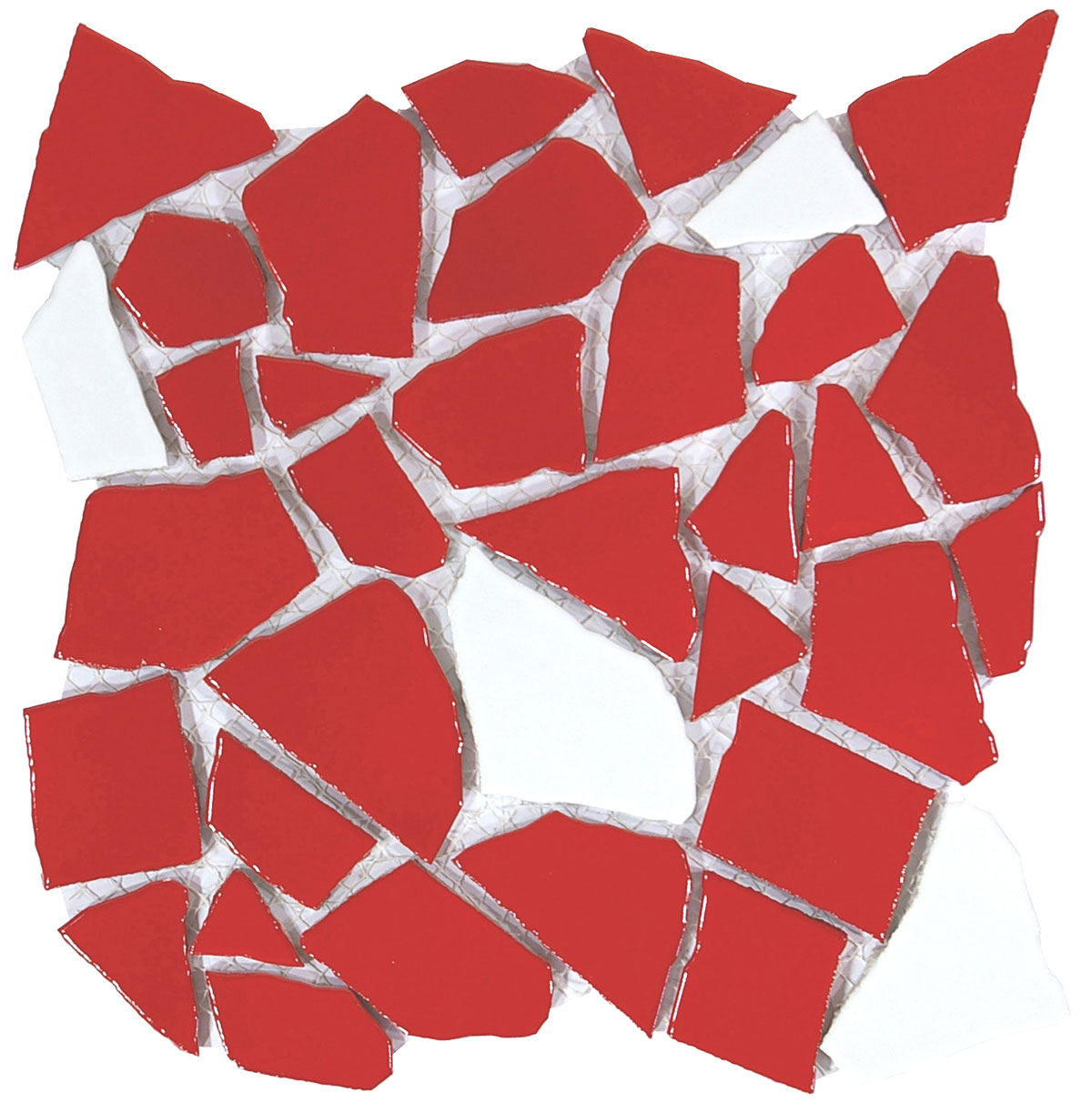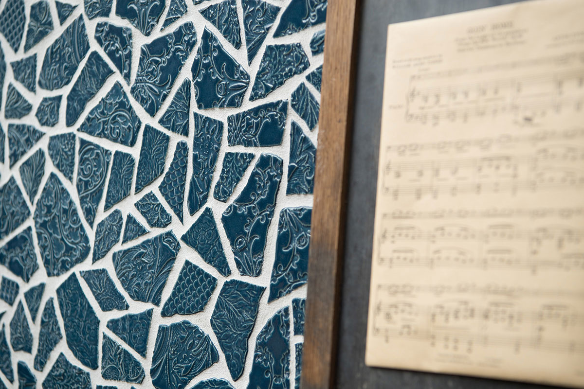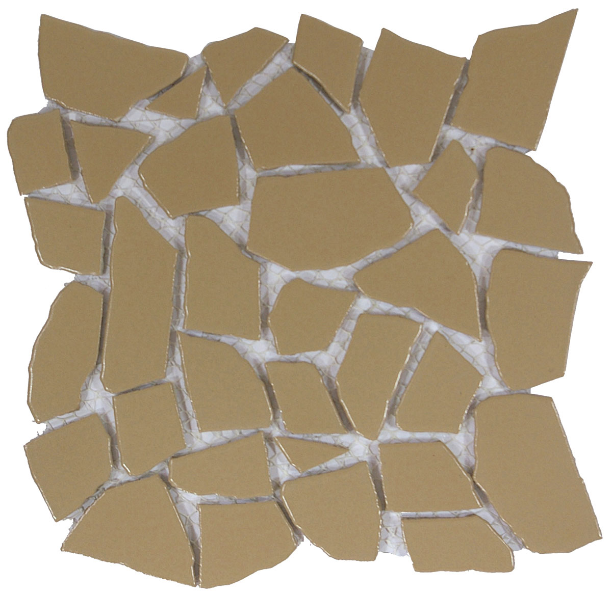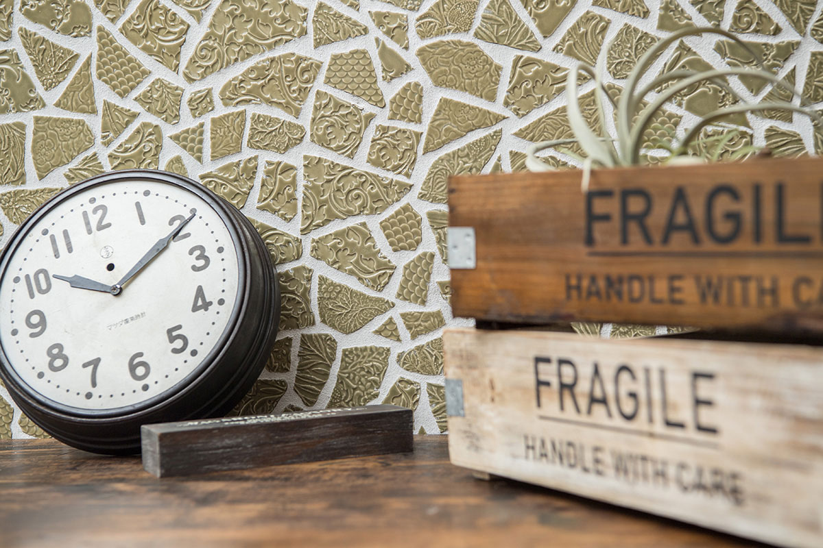 曲面・曲線に張ることができるタイルです。生産工程で人間が割っていますので同じ形状はありません。鋭角部分の縁も丸く加工しているので安全です。