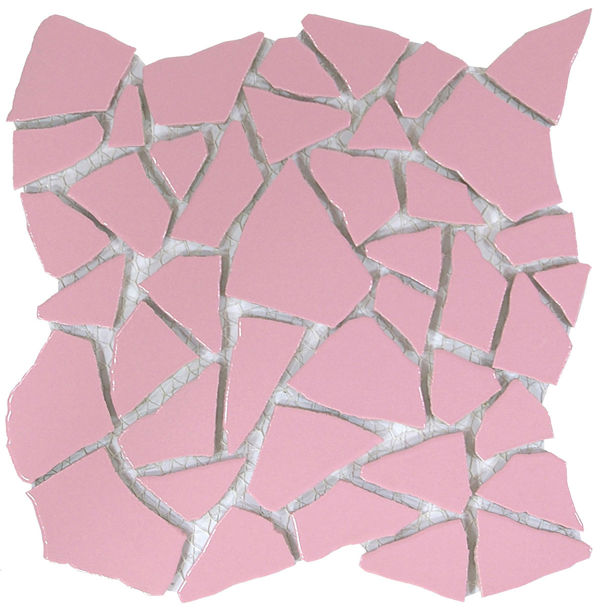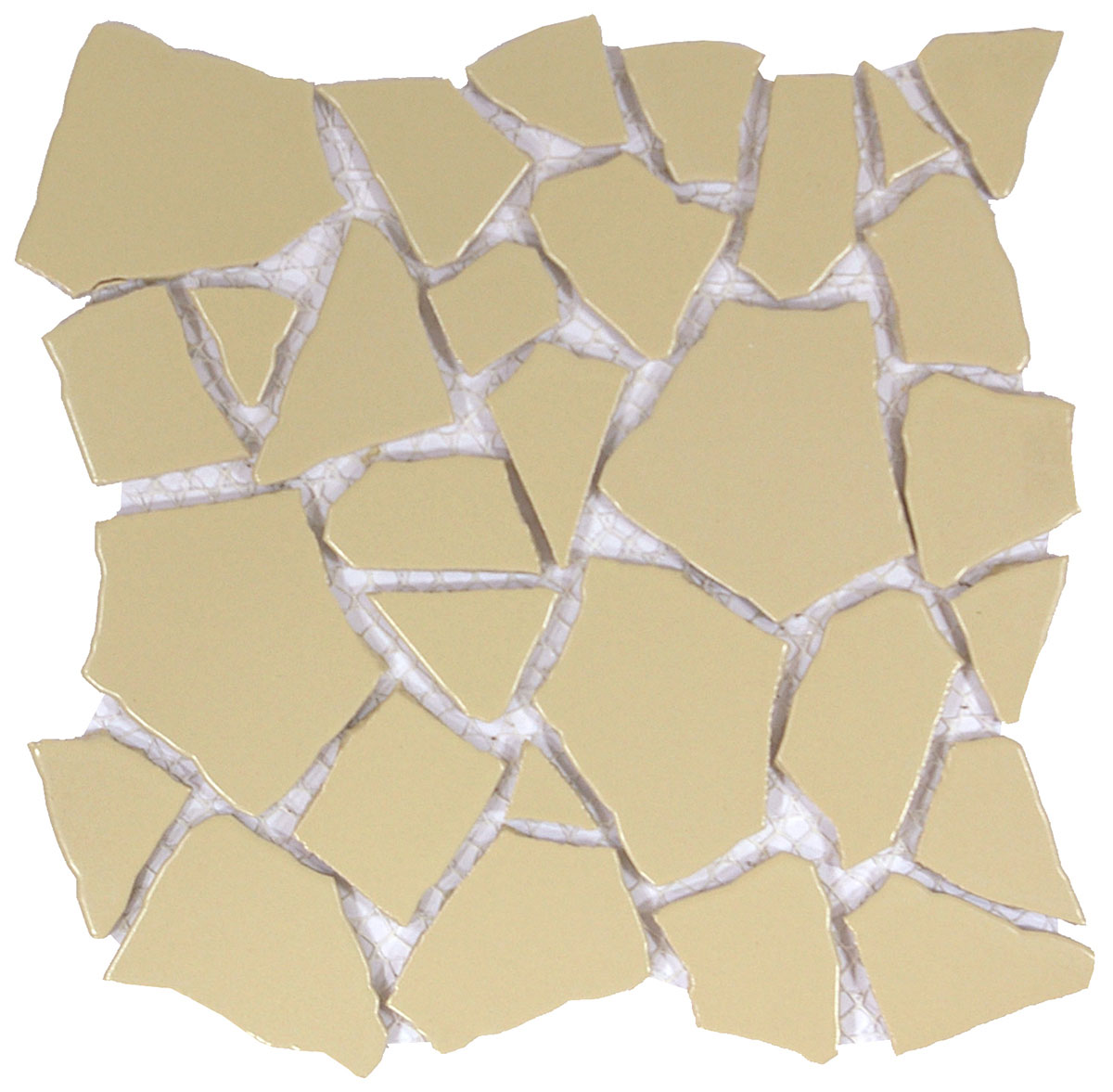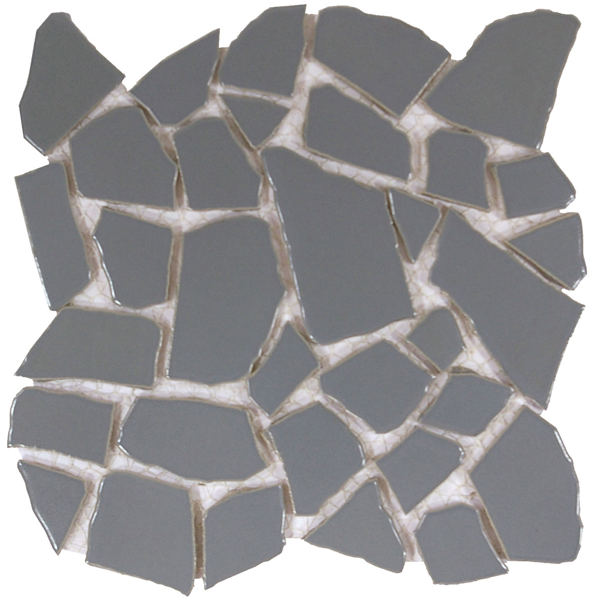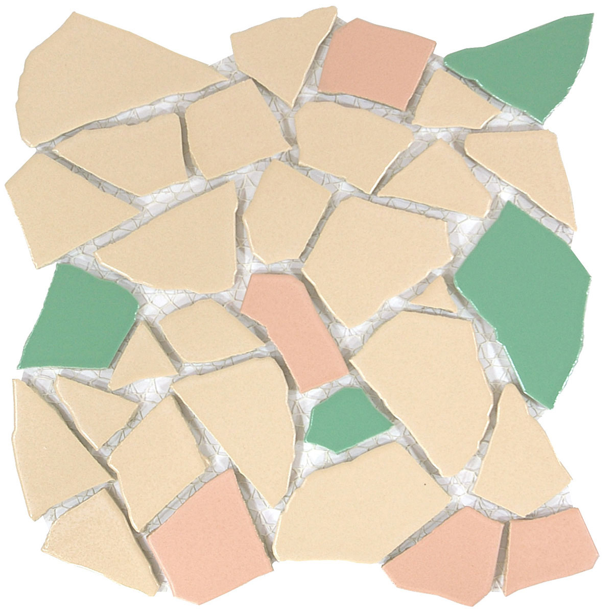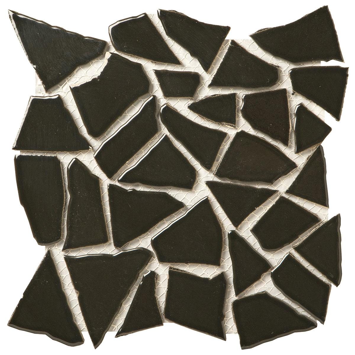 曲面・曲線に張ることができるタイルです。生産工程で人間が割っていますので同じ形状はありません。鋭角部分の縁も丸く加工しているので安全です。