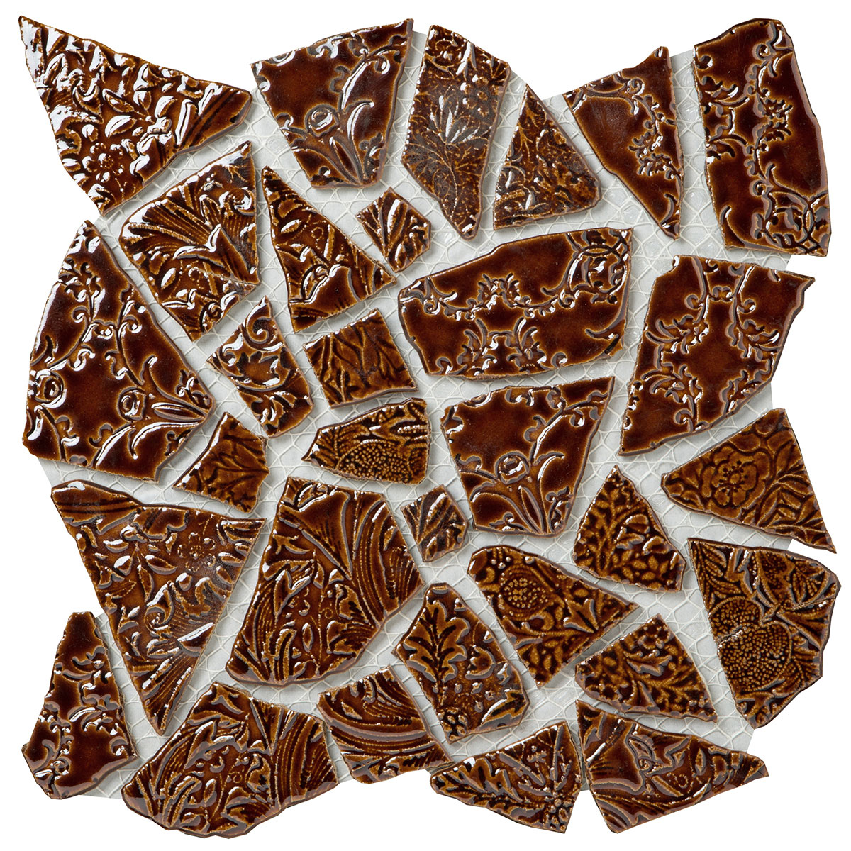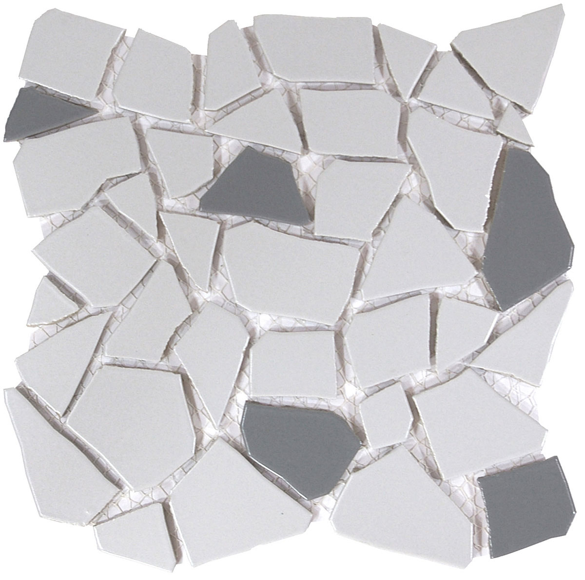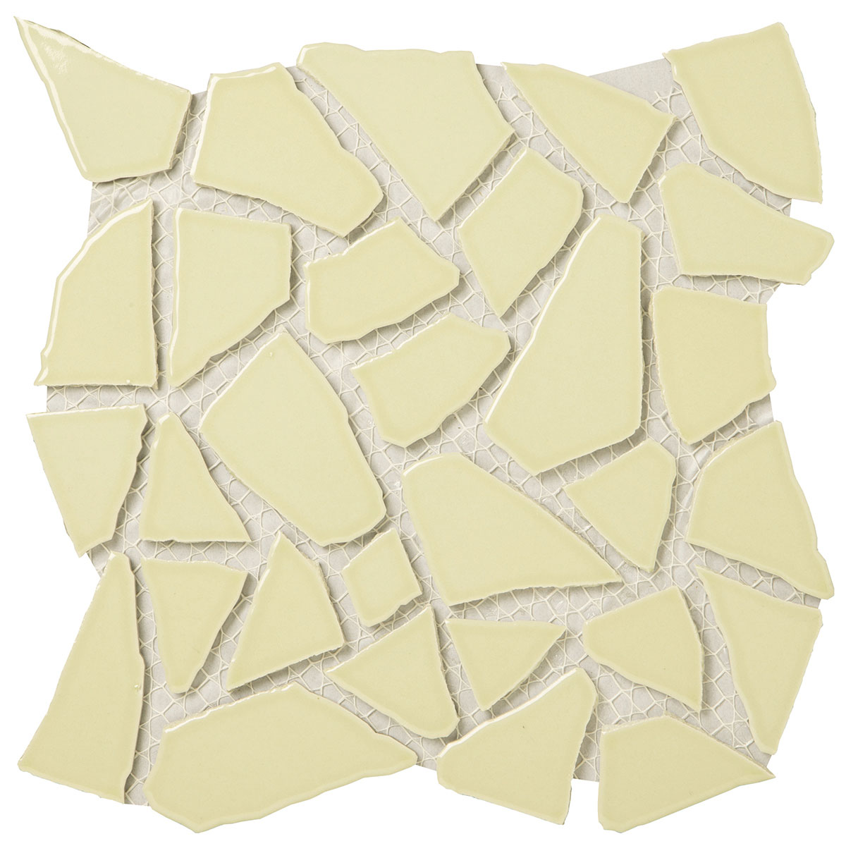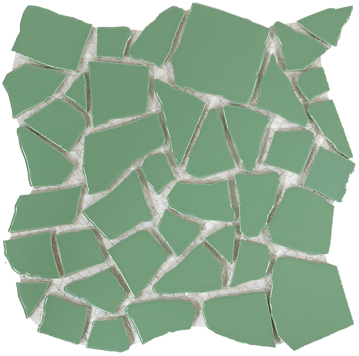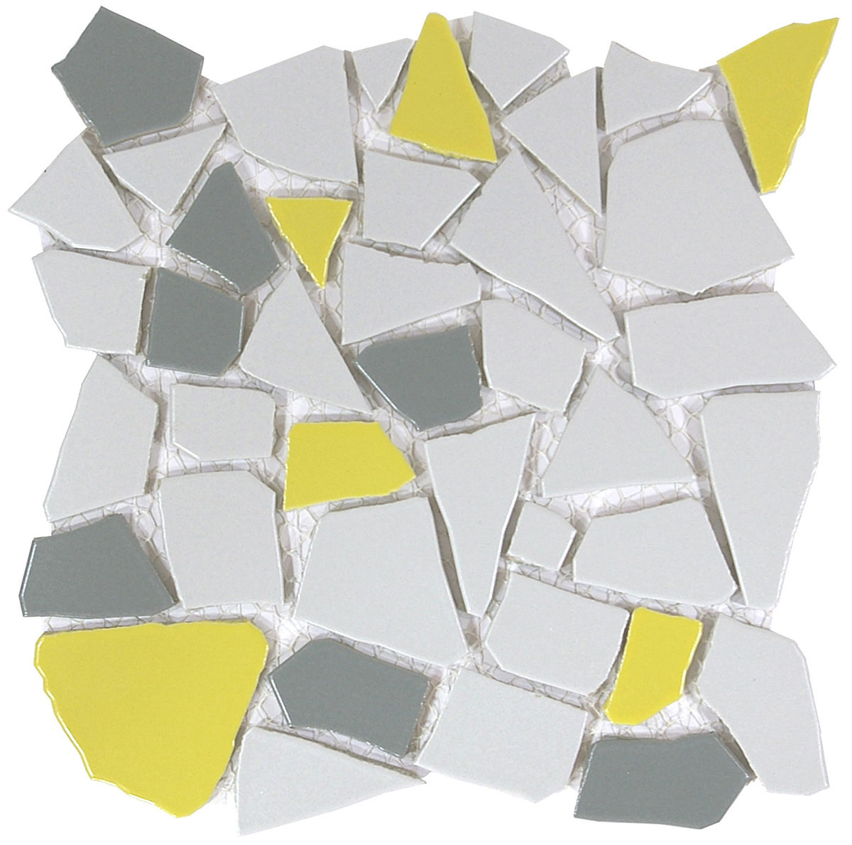曲面・曲線に張ることができるタイルです。生産工程で人間が割っていますので同じ形状はありません。鋭角部分の縁も丸く加工しているので安全です。