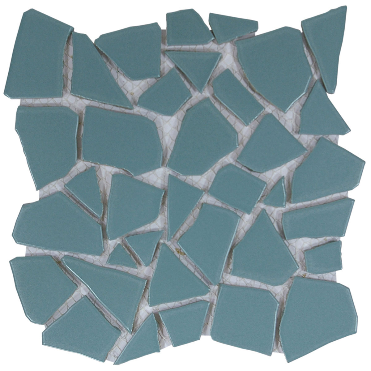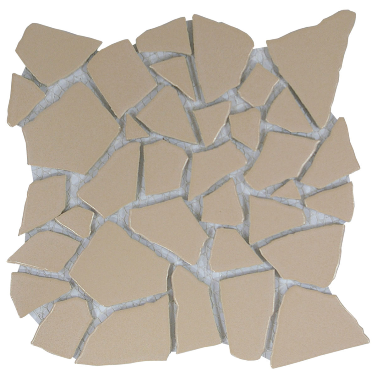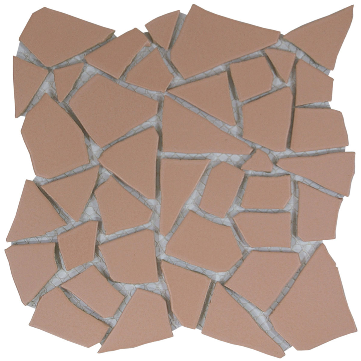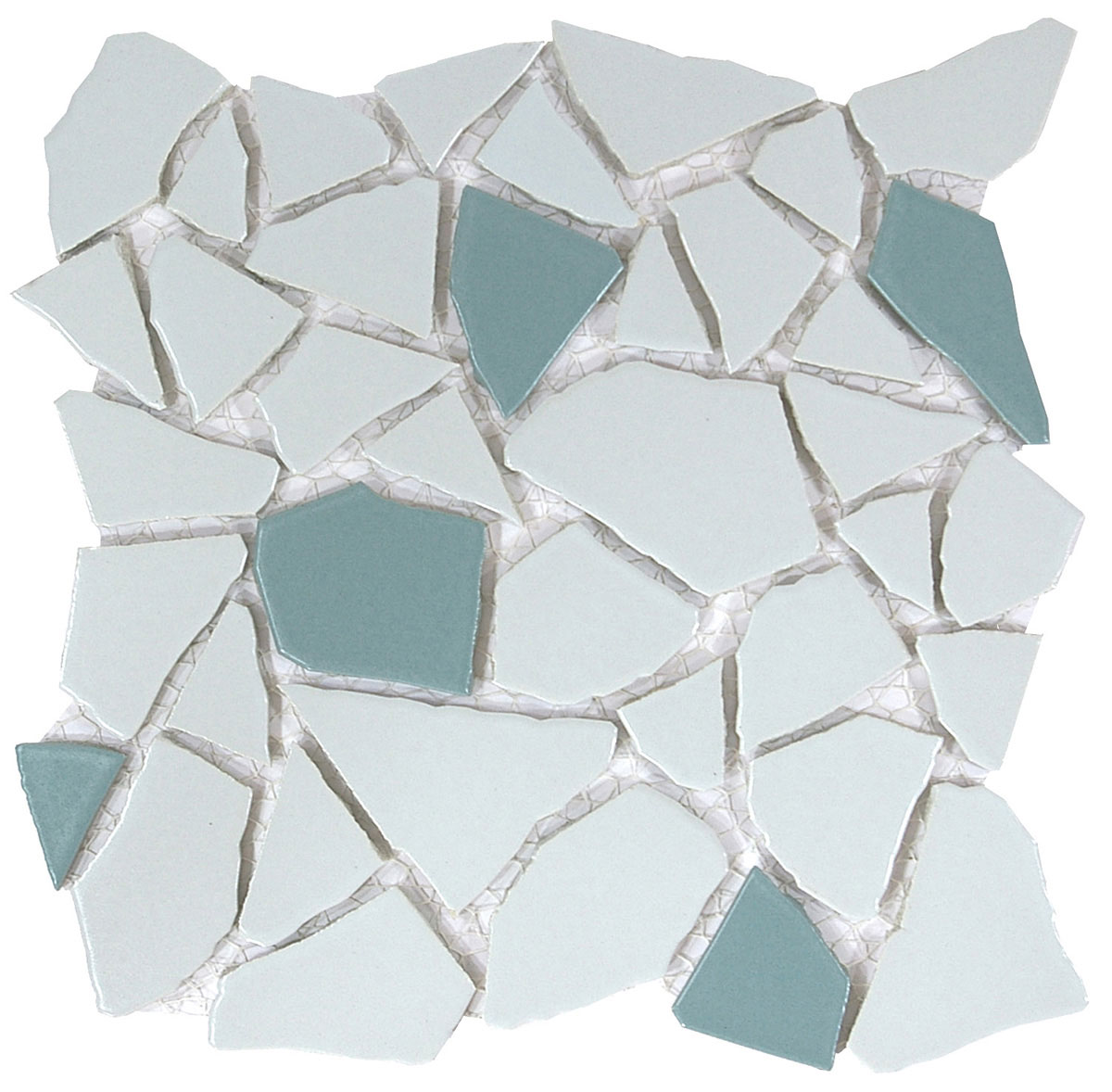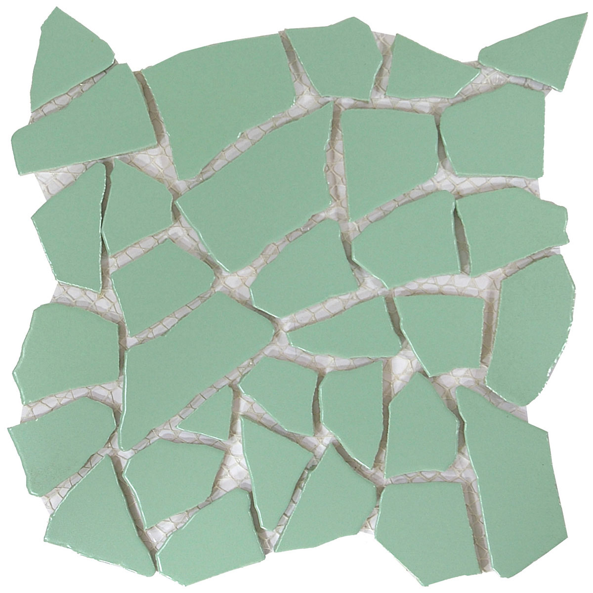 曲面・曲線に張ることができるタイルです。生産工程で人間が割っていますので同じ形状はありません。鋭角部分の縁も丸く加工しているので安全です。
