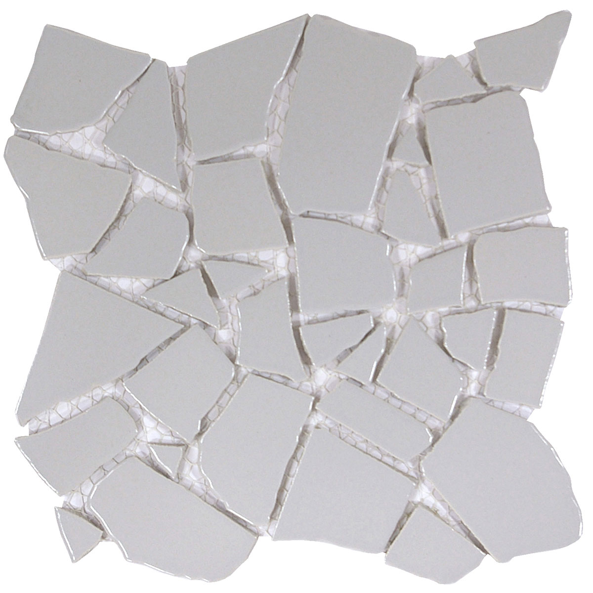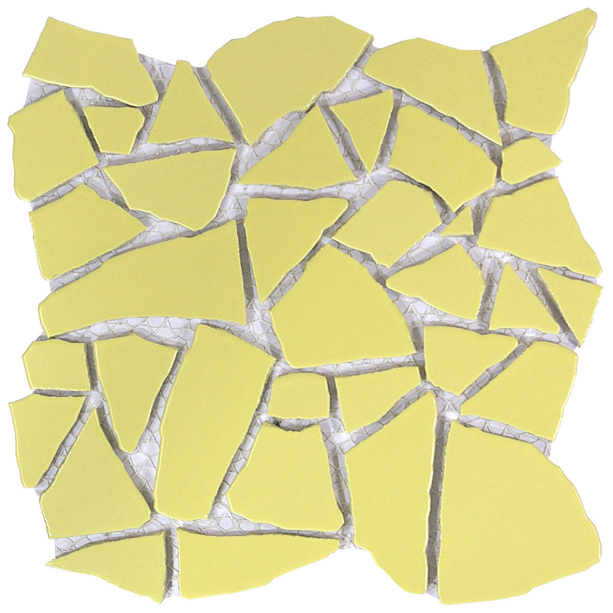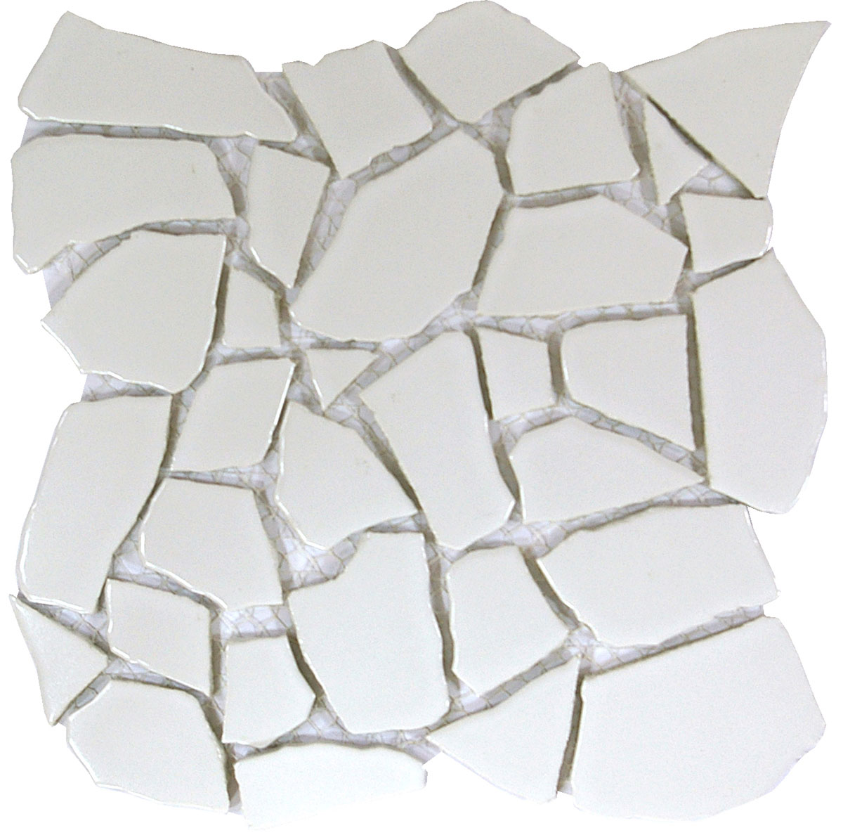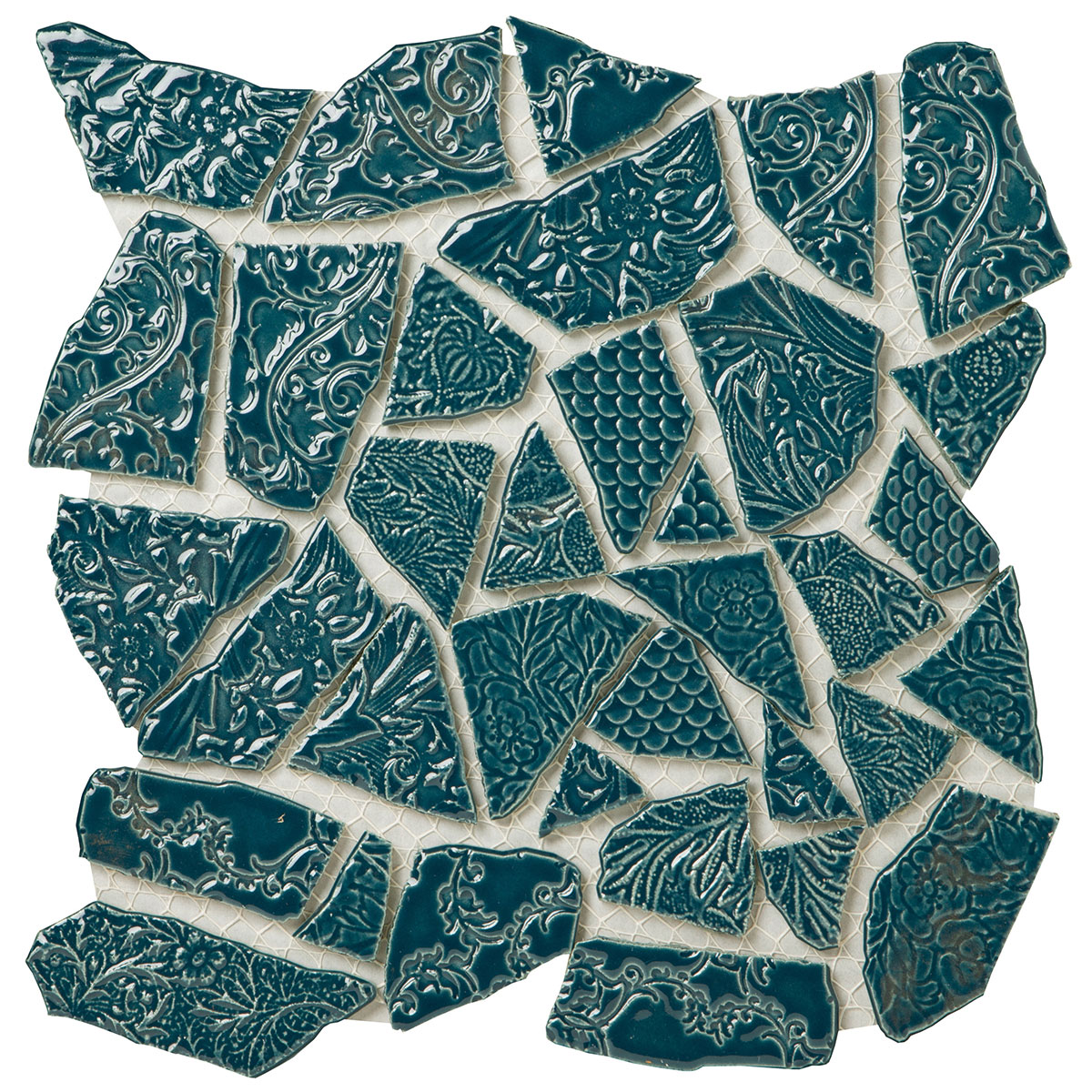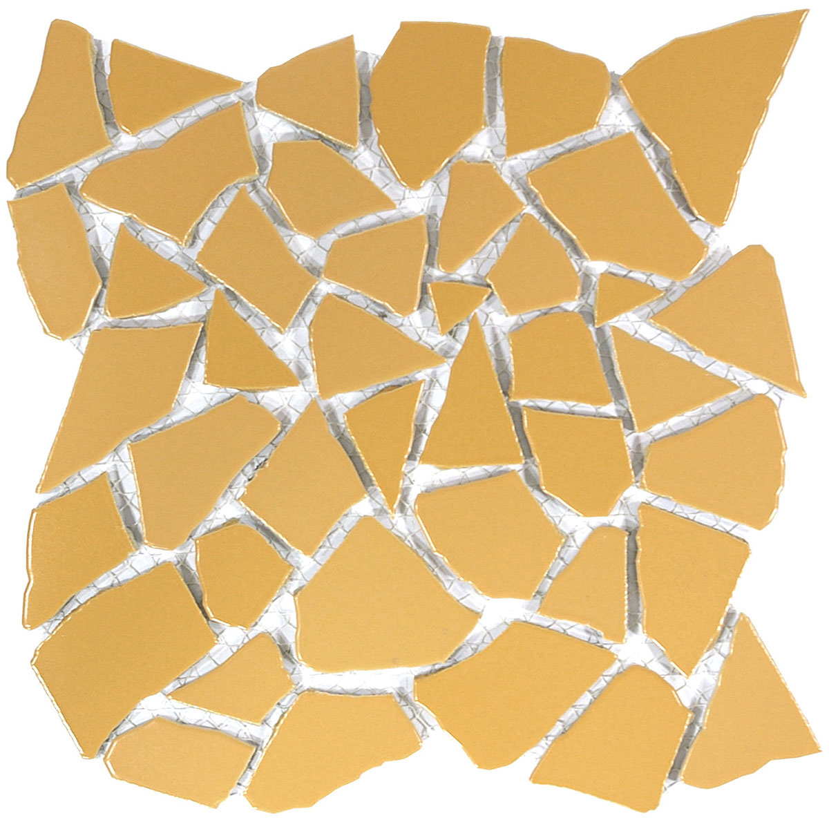曲面・曲線に張ることができるタイルです。生産工程で人間が割っていますので同じ形状はありません。鋭角部分の縁も丸く加工しているので安全です。