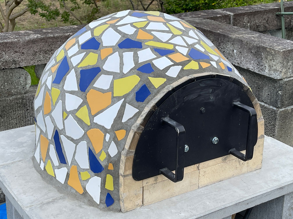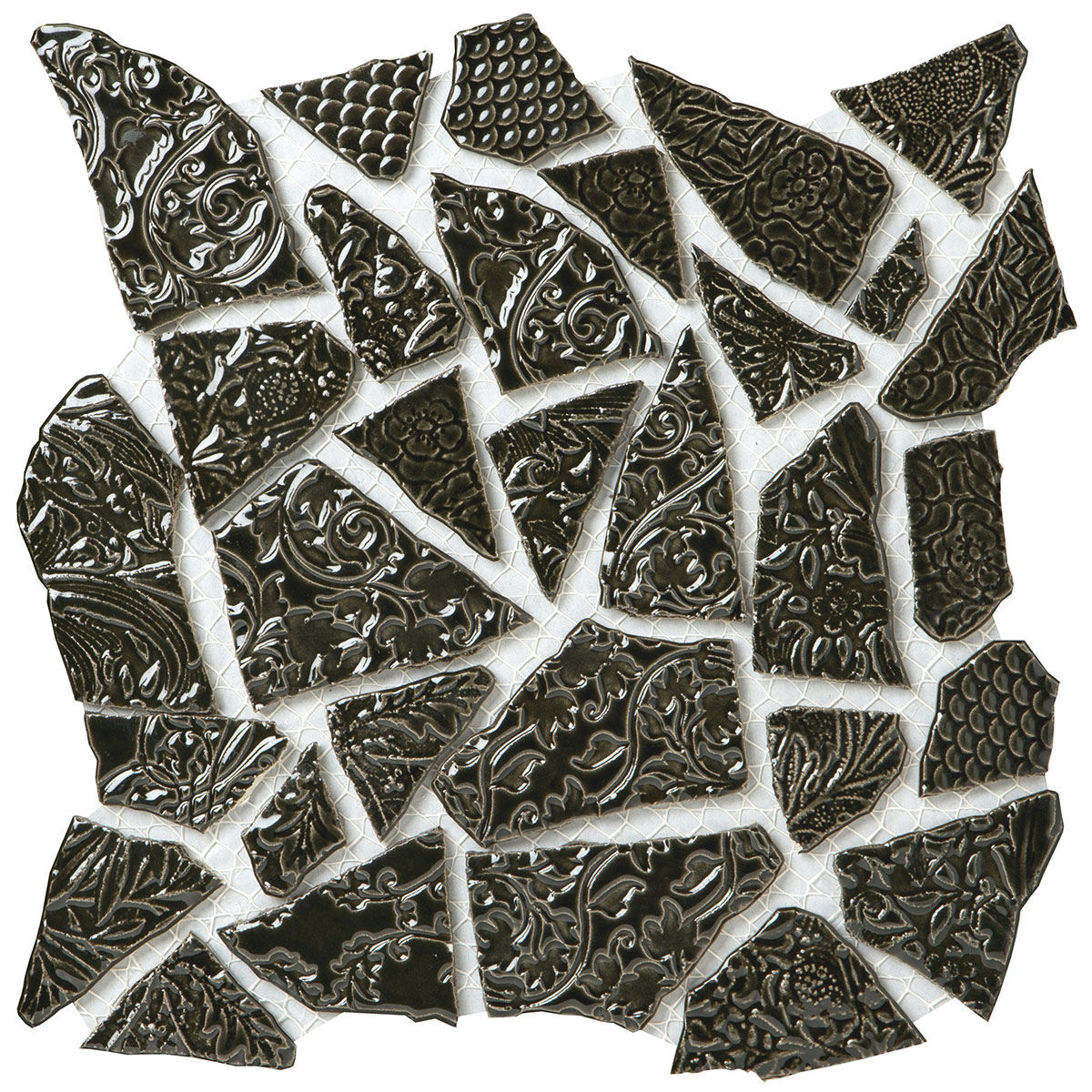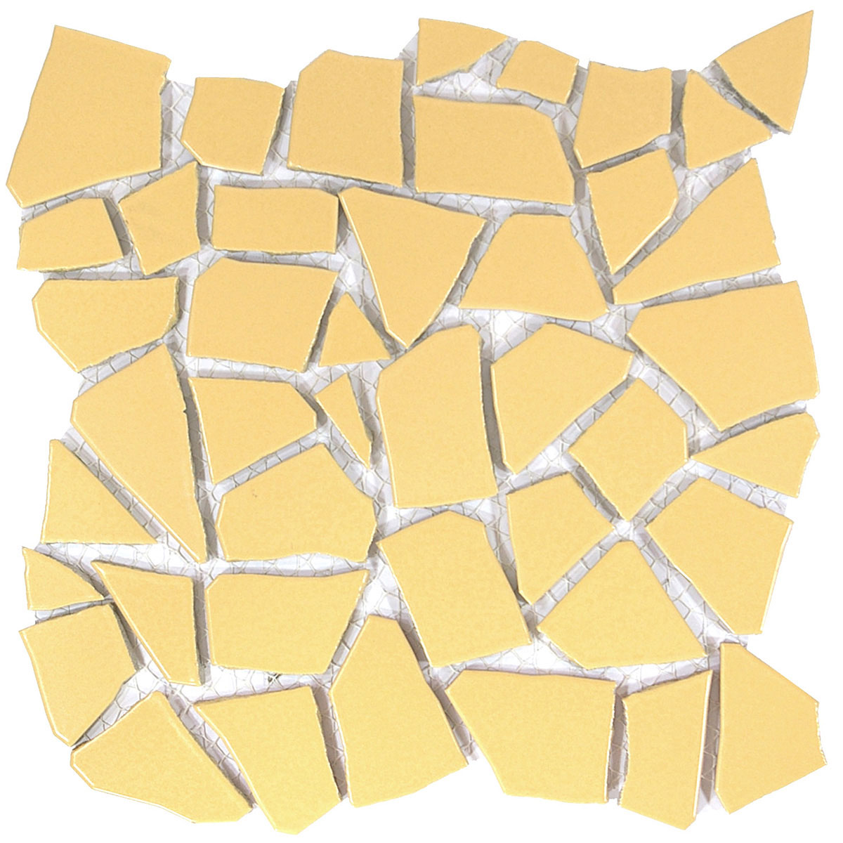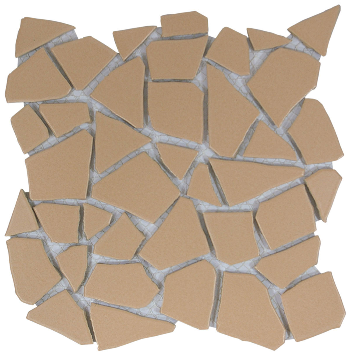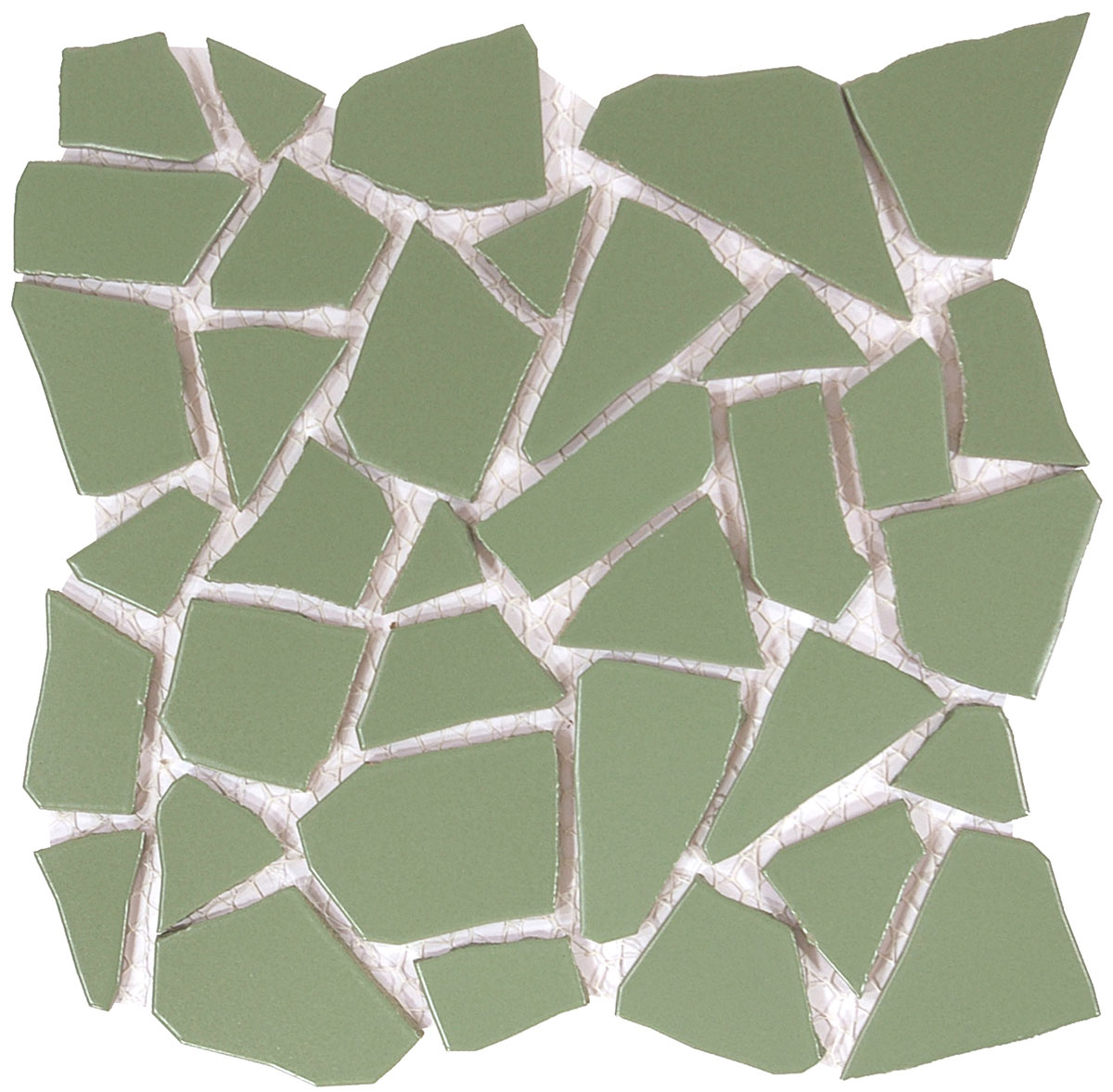 曲面・曲線に張ることができるタイルです。生産工程で人間が割っていますので同じ形状はありません。鋭角部分の縁も丸く加工しているので安全です。