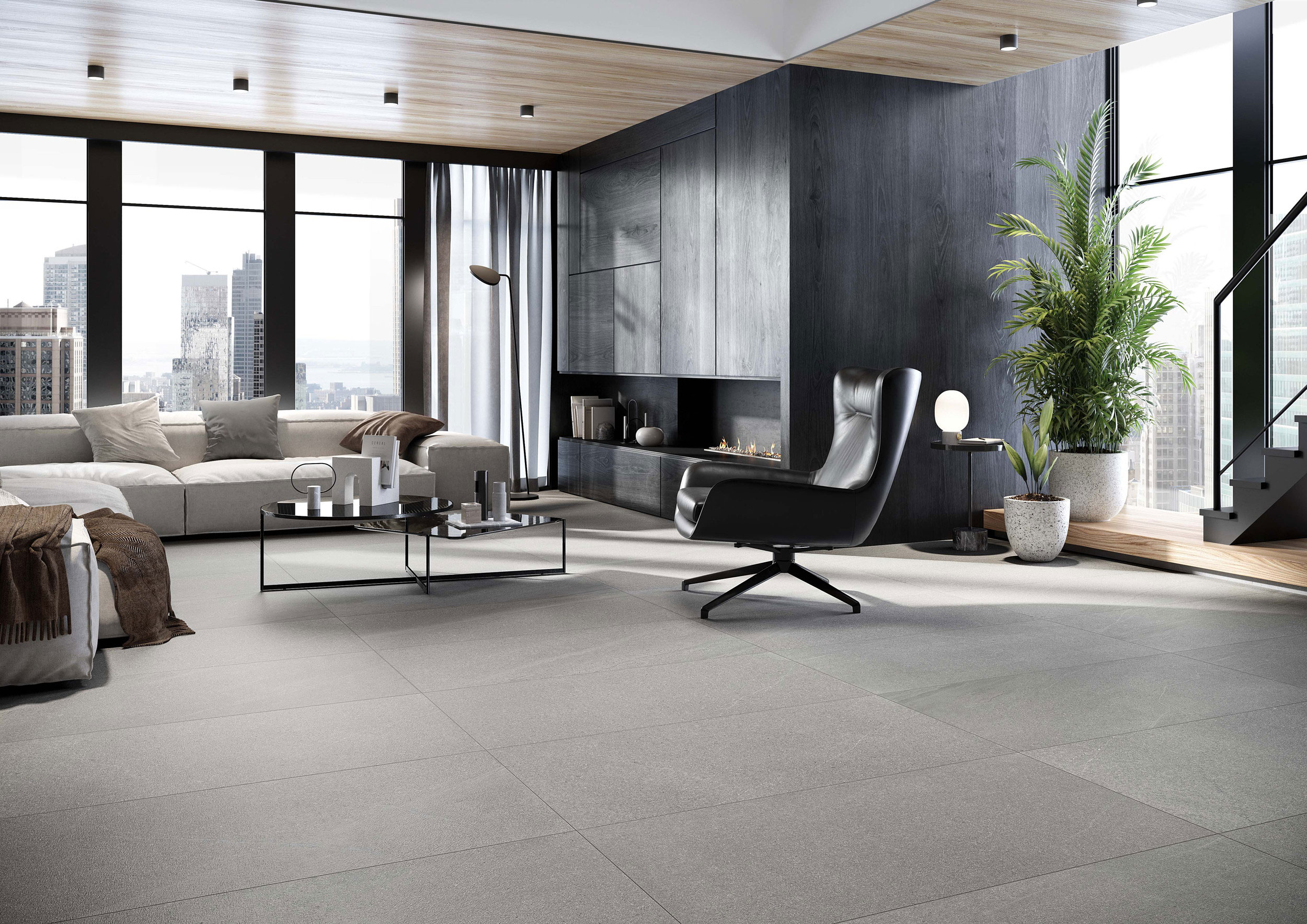 イギリスで広く使われている、バーリントンストーンを再現したタイル。石は時間の経過により強い地層を持ち、不均一な色の表面が特長です。