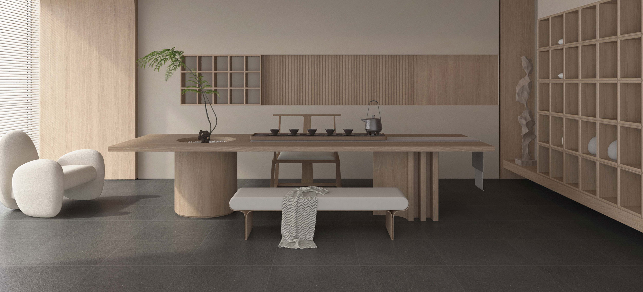 【Monotone】どっしりとした質感の「ブラック」と清潔感あふれる美しき「ホワイト」のコレクション。多彩な面状をラインナップすることで使用場所に合わせた選定が可能に。