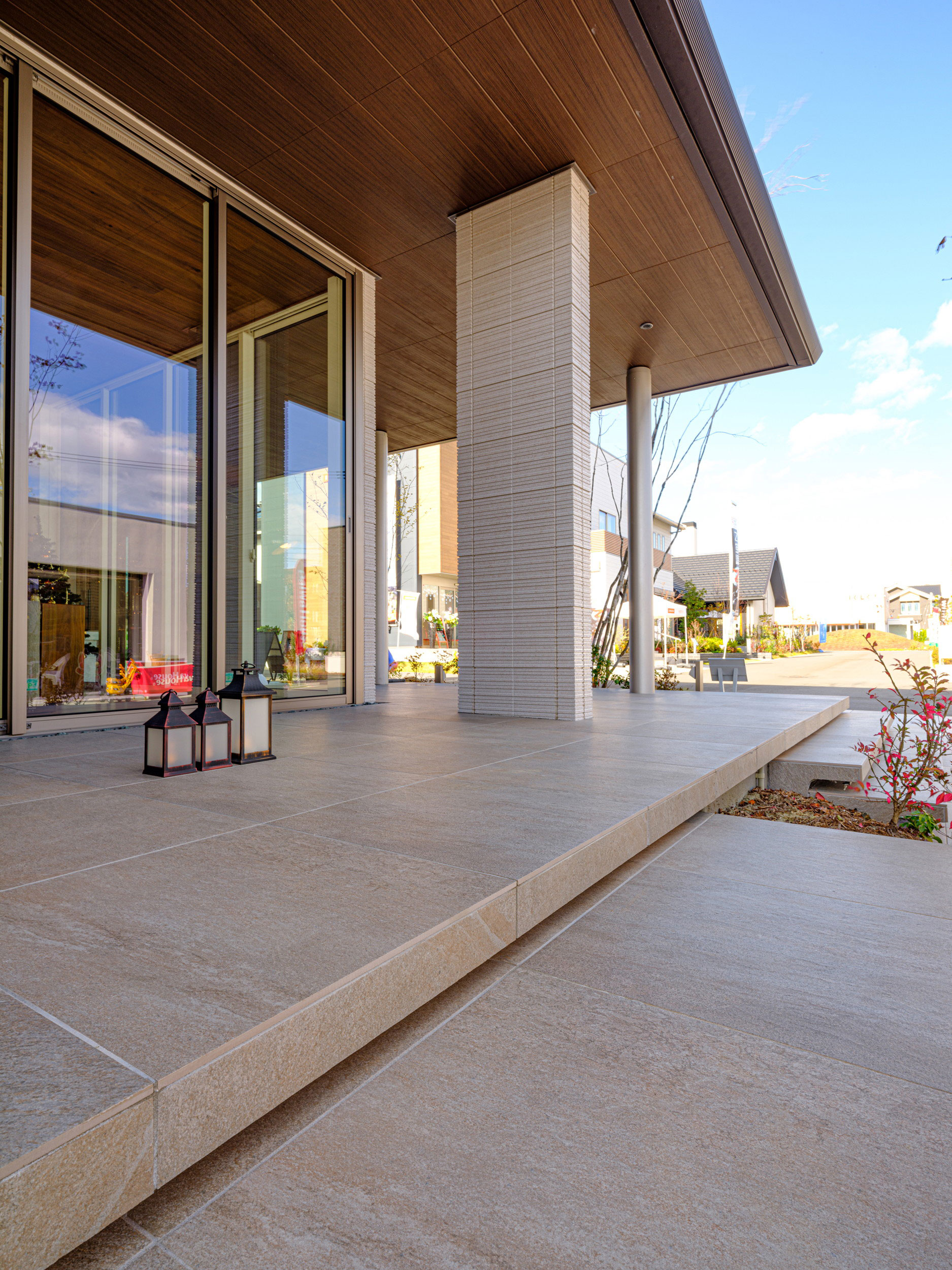 その意匠は天然石に木目、セメント等に加え、湿式タイルを筆頭とした、焼き物らしい素材感を活かしたタイルなど、多岐に渡ります。
